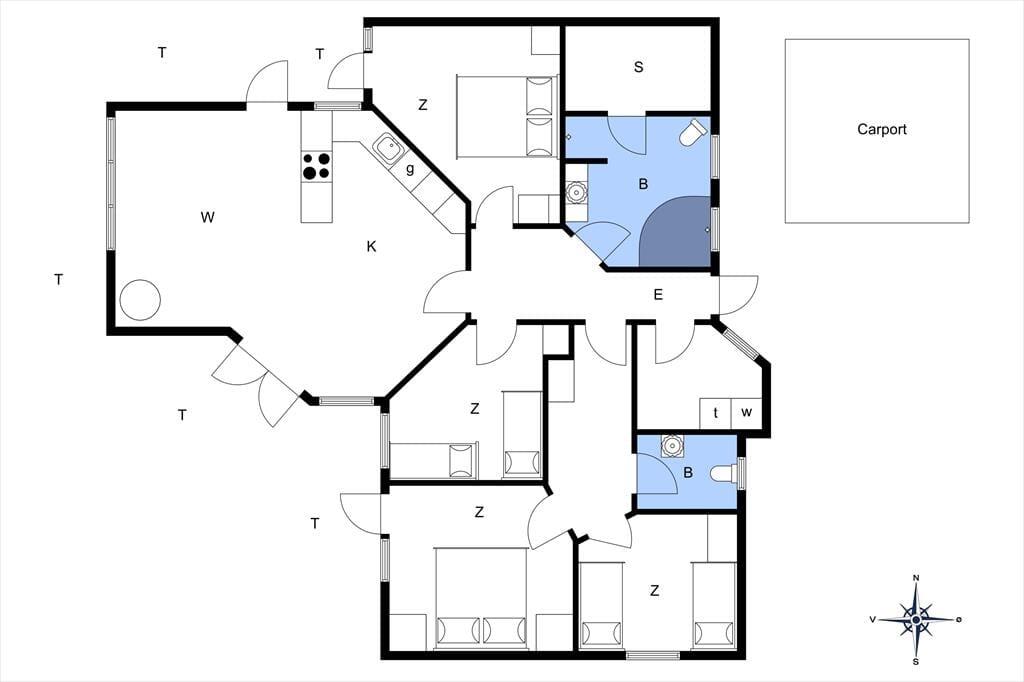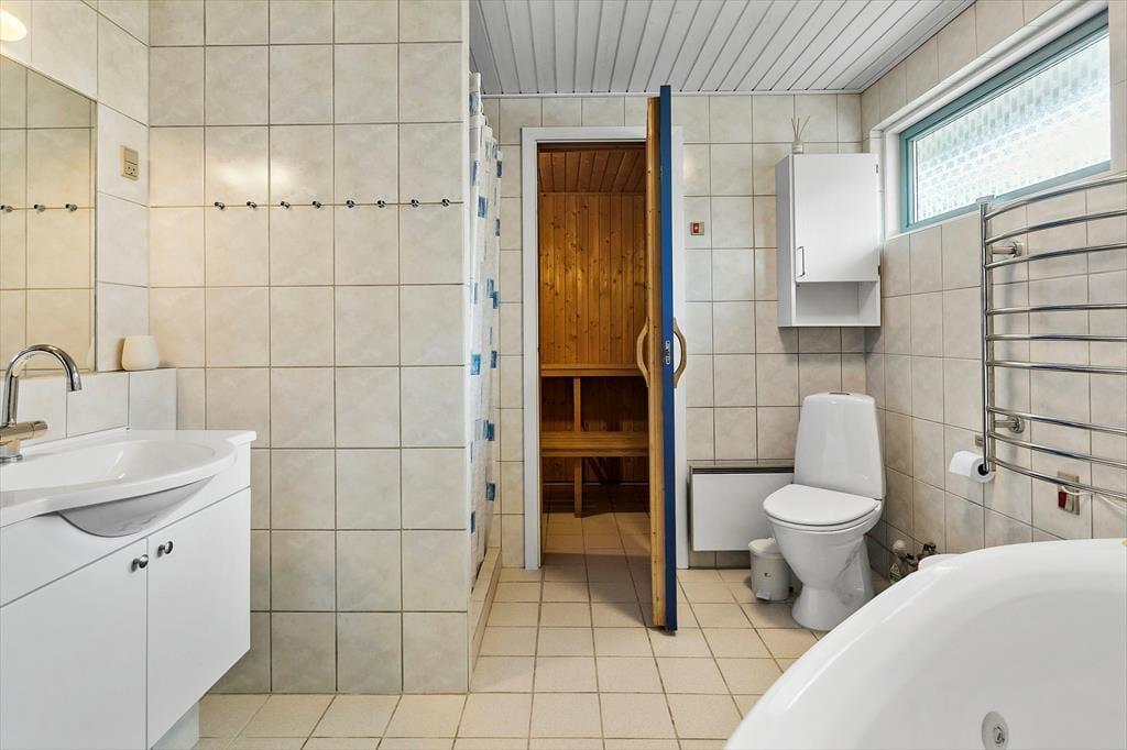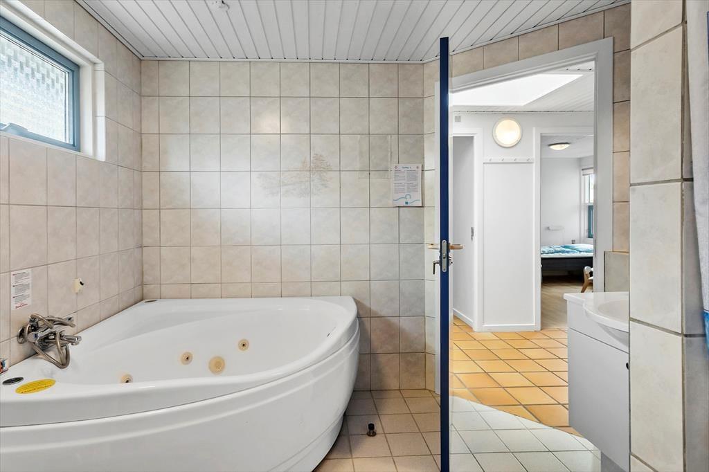 Das Ferienhaus verfügt über eine Eingangshalle mit Waschmaschine und Wäschetrockner. Darüber hinaus gibt es 4 gute Schlafzimmer, wobei sich in 2 der Schlafzimmer ein Doppelbett und in den letzten 2 Schlafzimmern 2 Einzelbetten befinden. Das Ferienhaus verfügt über 1 Badezimmer mit WC, Dusche, Whirlpool und Sauna sowie 1 Gäste-WC mit WC und Waschbecken. Last but not least bietet das Ferienhaus eine offene Küche in Verbindung mit dem Essbereich und dem Wohnzimmer sowie weiteren Zugang zum schönen Terrassenbereich des Ferienhauses.