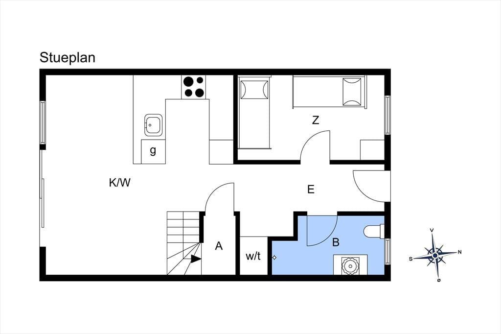 Die Ferienwohnung verfügt über einen Vorraum mit Zugang zu einem Badezimmer mit WC, Waschbecken und Dusche sowie zu einem Schlafzimmer mit 2 Einzelbetten und Stauraum. Am Ende des Eingangs gelangt man in die schöne und helle Wohnküche des Hauses, wo im Küchenteil alles vorhanden ist, was das Herz begehrt, während im restlichen Raum ein Esstisch mit Stühlen und ein Schlafsofa stehen. Von der Wohnküche gibt es auch Zugang zur schönen Terrasse der Wohnung.