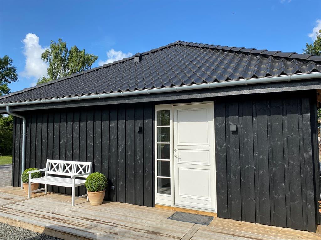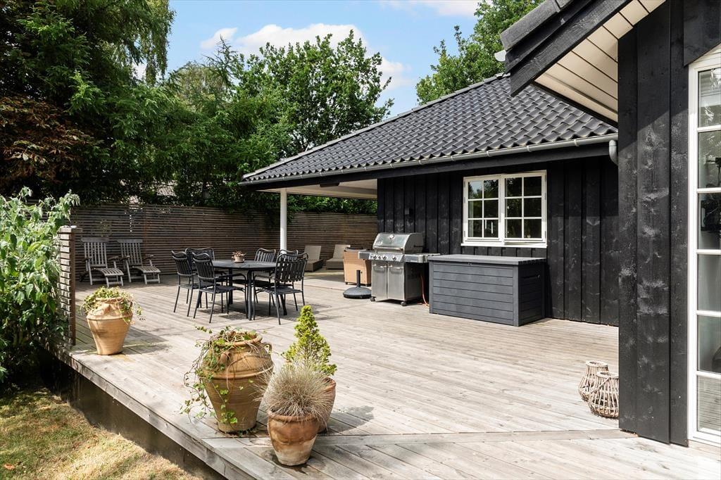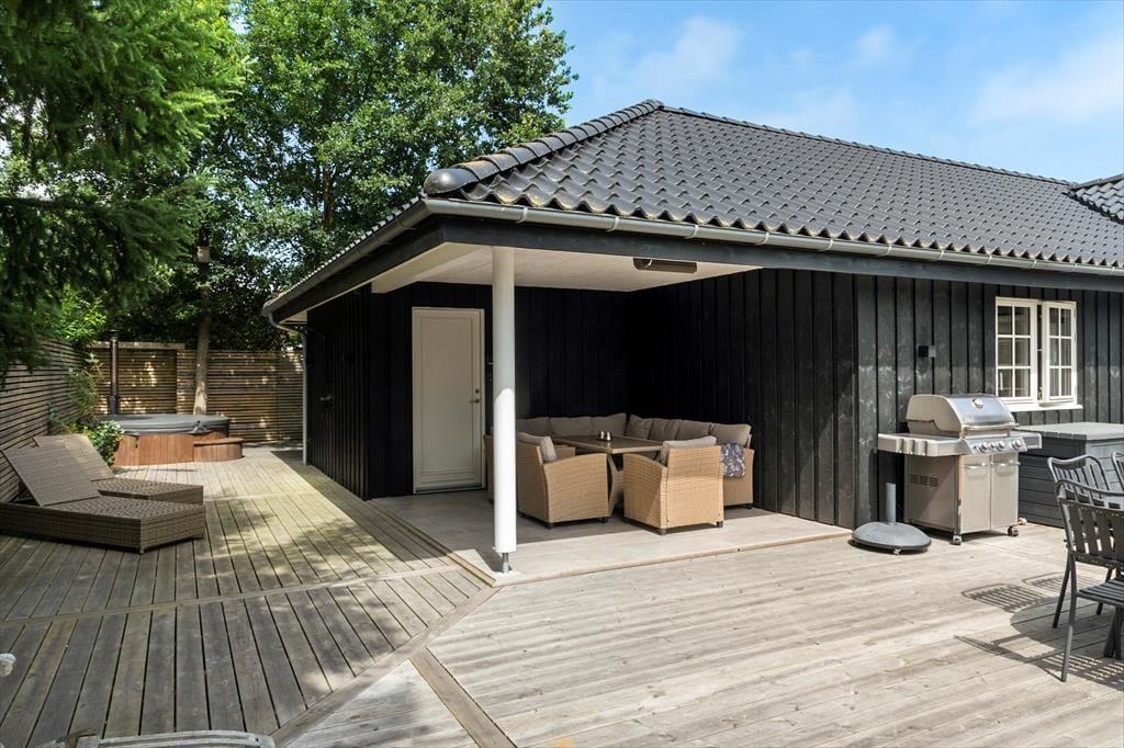 Das Ferienhaus befindet sich auf einem 1.190 m² großen Grundstück, umgeben von einer großzügigen Holzterrasse. Hier finden Sie Gartenmöbel, einen Grill und Sonnenliegen – der ideale Ort für gemütliche Momente im Freien. Auf der Terrasse befindet sich außerdem ein Wildnisbad, ideal zum Entspannen und für lange, warme Abende. Der Garten bietet eine große Rasenfläche mit viel Platz zum Spielen, Ballspielen und für viele Freizeitaktivitäten für Kinder und Erwachsene.