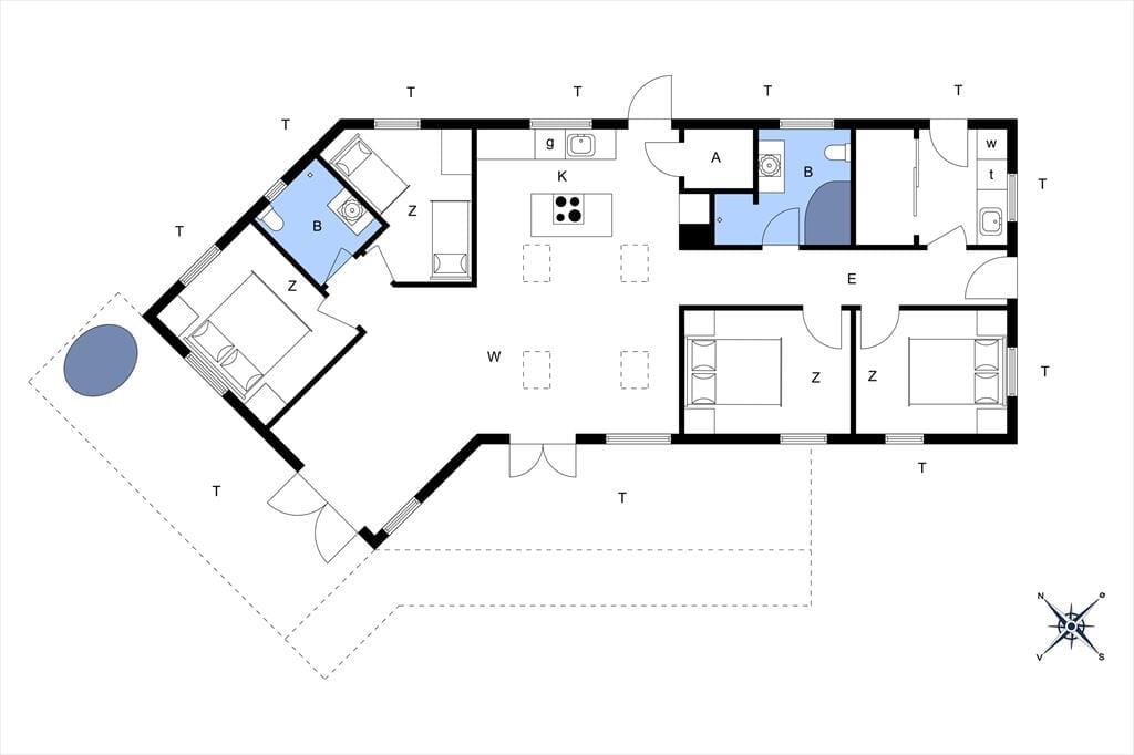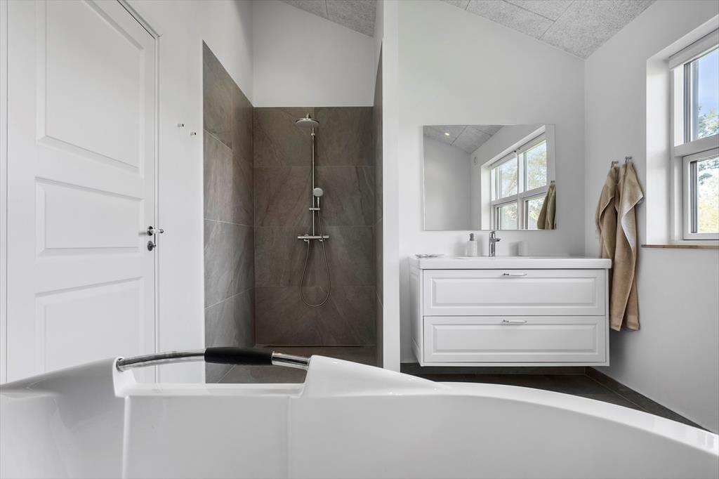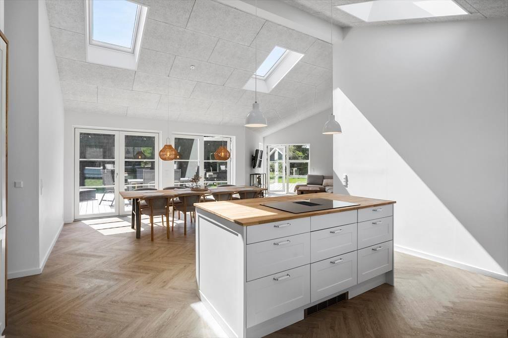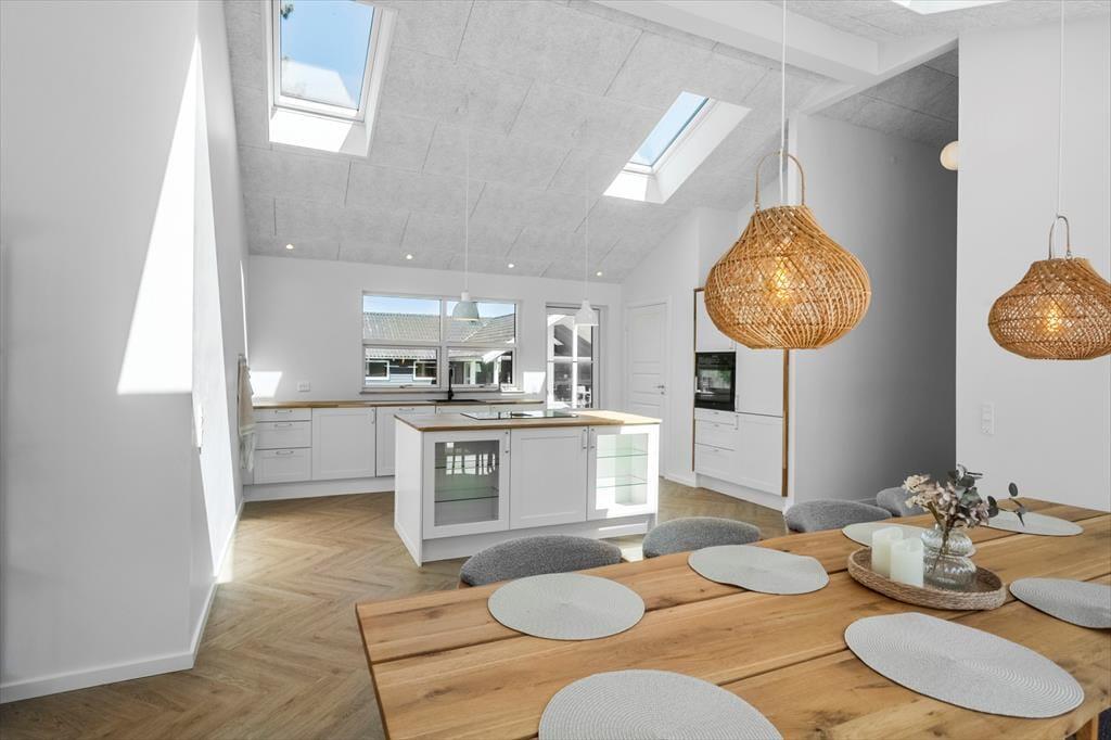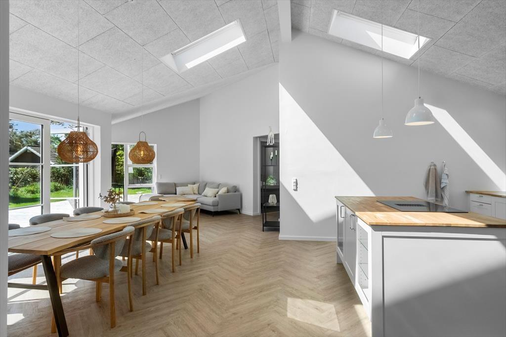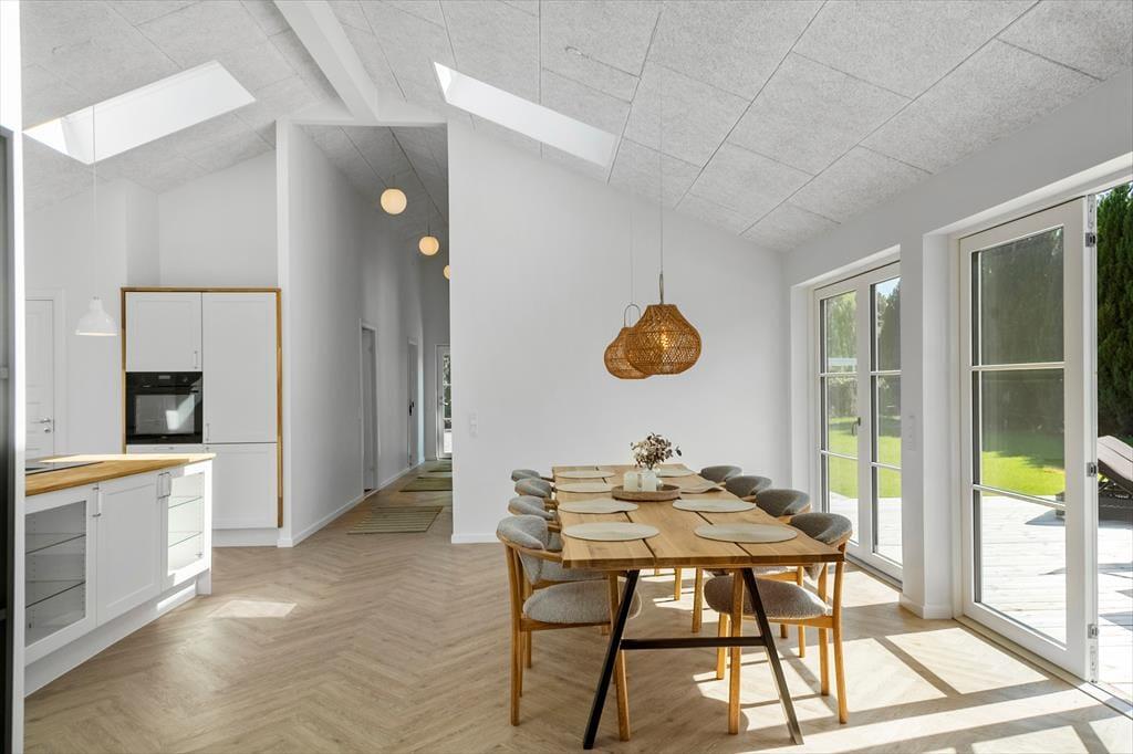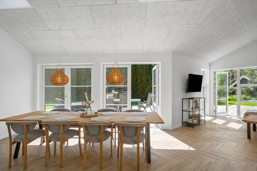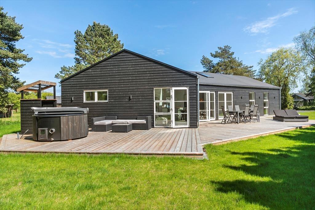 Das Ferienhaus ist für 8 Personen geeignet. Das Ferienhaus ist 142 m² groß und wurde 2024 gebaut. Das Ferienhaus bietet einen Hauswirtschaftsraum mit Waschmaschine und Trockner, 4 gute Schlafzimmer mit einem Doppelbett in 3 der Schlafzimmer und 2 Einzelbetten im letzten Schlafzimmer. Darüber hinaus gibt es 2 Badezimmer, eines mit Toilette und Dusche, das andere mit Toilette, Dusche und Whirlpool im Innenbereich. Schließlich verfügt das Sommerhaus über eine wunderschöne Wohnküche mit Essbereich und Sofaecke. Von der Küche aus hat man Zugang zur schönen Terrasse des Hauses.