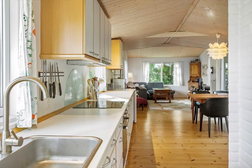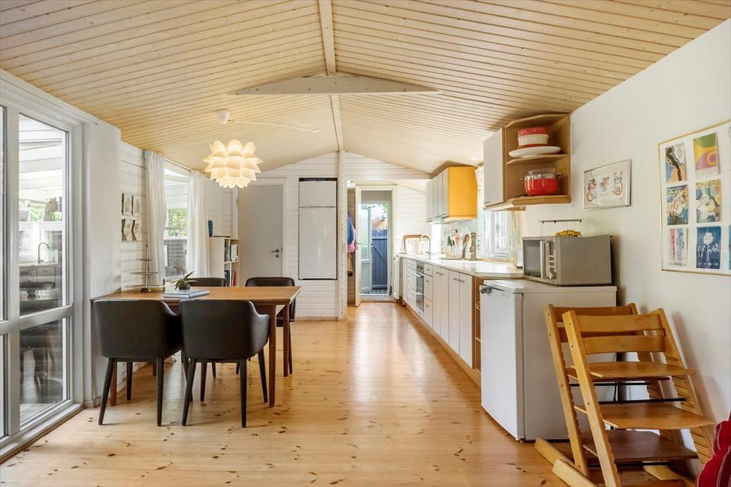 Das Ferienhaus bietet einen Eingangsbereich mit Zugang zur offenen Küche. Hier befinden sich ein Essbereich und eine gemütliche Sitzecke. Von hier aus gelangt man in den schönen Wintergarten. Darüber hinaus bietet das Haus ein Wohnzimmer mit Holzofen und zwei gemütliche Schlafzimmer mit je einem Doppelbett.