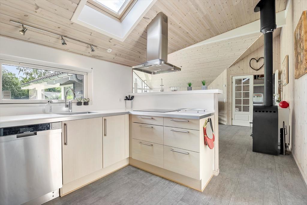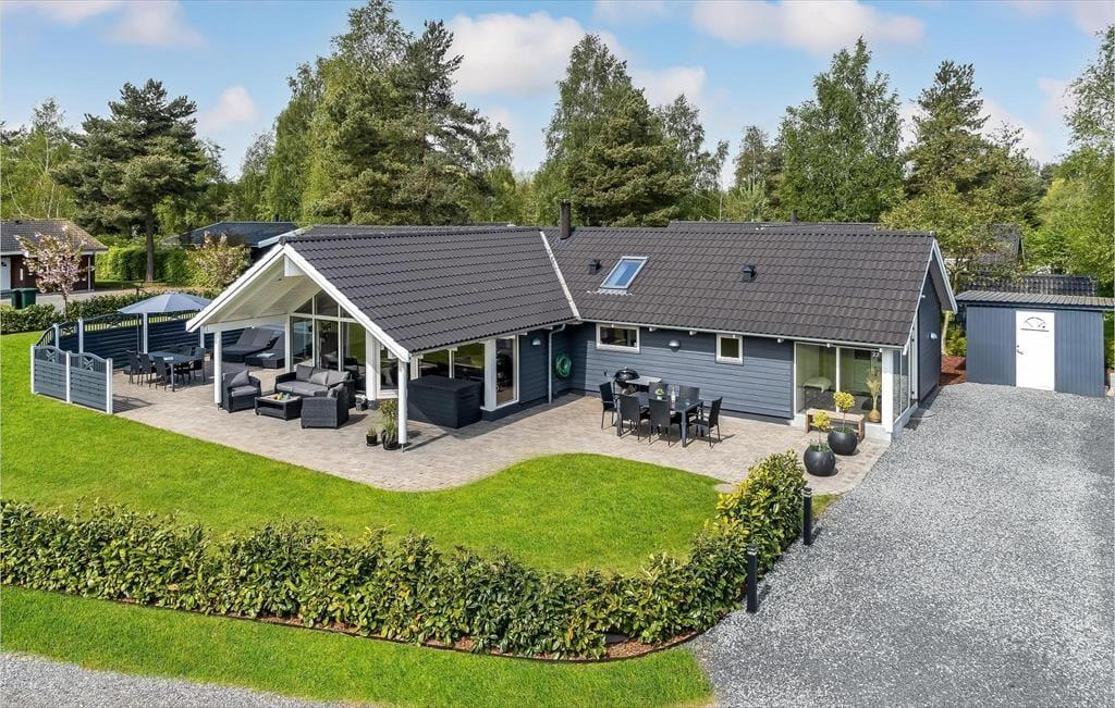 Das Ferienhaus liegt auf einem 934 m² großen Grundstück mit viel Platz für Aktivitäten auf der schönen Rasenfläche. Zum Ferienhaus gehört eine große, schöne Terrasse, die teilweise überdacht ist und mit Gartenmöbeln und Grill ausgestattet ist. Im Garten gibt es einen Sandkasten und eine Schaukel sowie eine gute Rasenfläche für viele Aktivitäten für Groß und Klein.