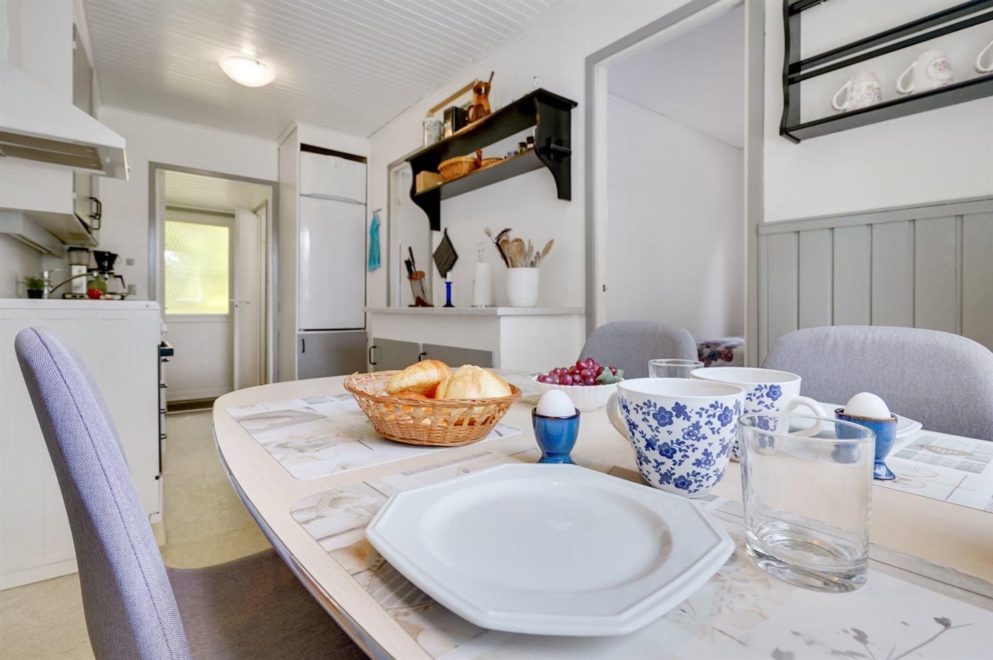 Die Ferienunterkunft liegt auf einem 1000 m² großen Gartengrundstück. Das Grundstück ist eingezäunt. Die Entfernung zum Meer beträgt 700 m. Die nächste Einkaufsmöglichkeit liegt 1500 m entfernt. Es steht ein 12 m² Terrassenareal zur Verfügung. Außerdem gibt es 8 m² überdachte Terrasse. Parkplatz auf dem Grundstück.