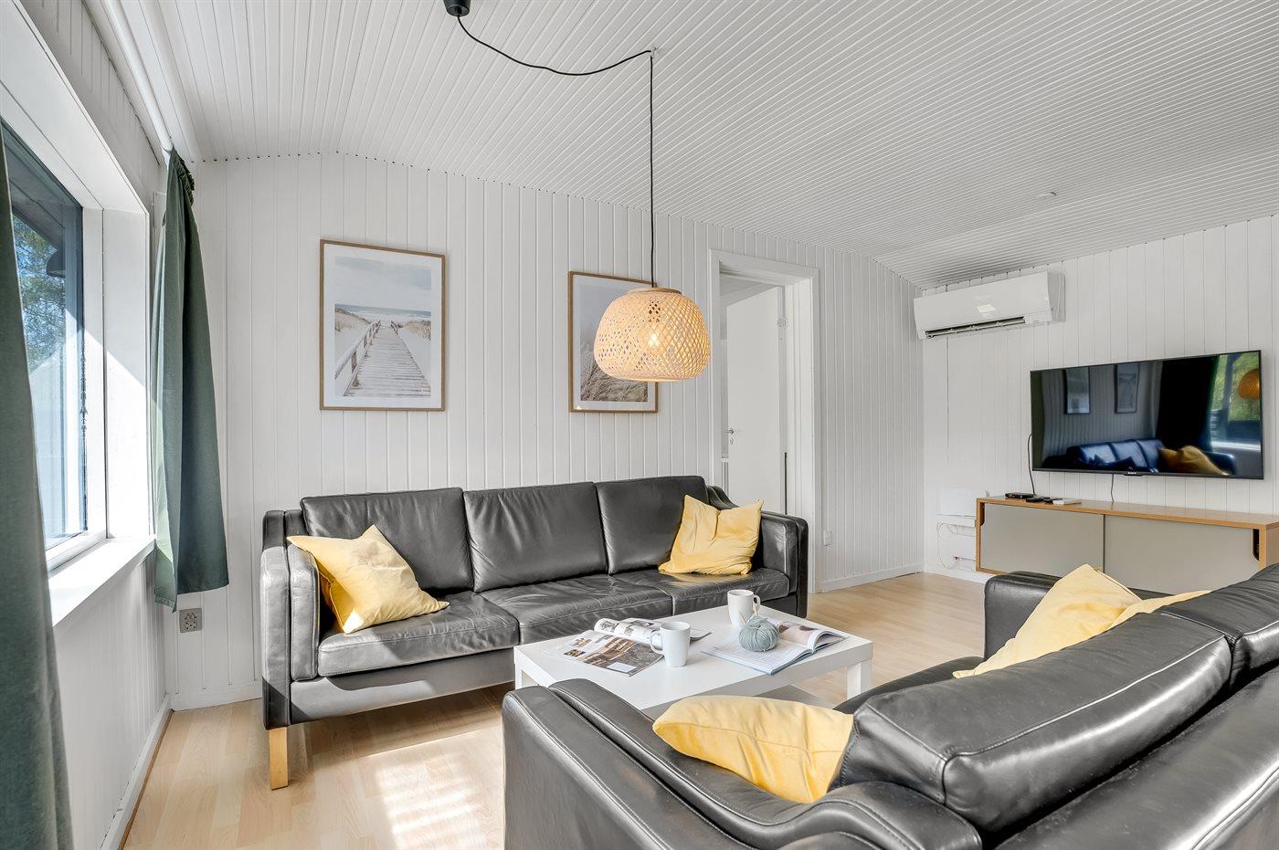 Das Ferienhaus liegt auf einem 1200 m² großen Gartengrundstück. Es sind 400 m zum Meer, 150 Meter zum beliebten Restaurant Lupinen, und der Kaufmann liegt in einer Entfernung von 100 m.