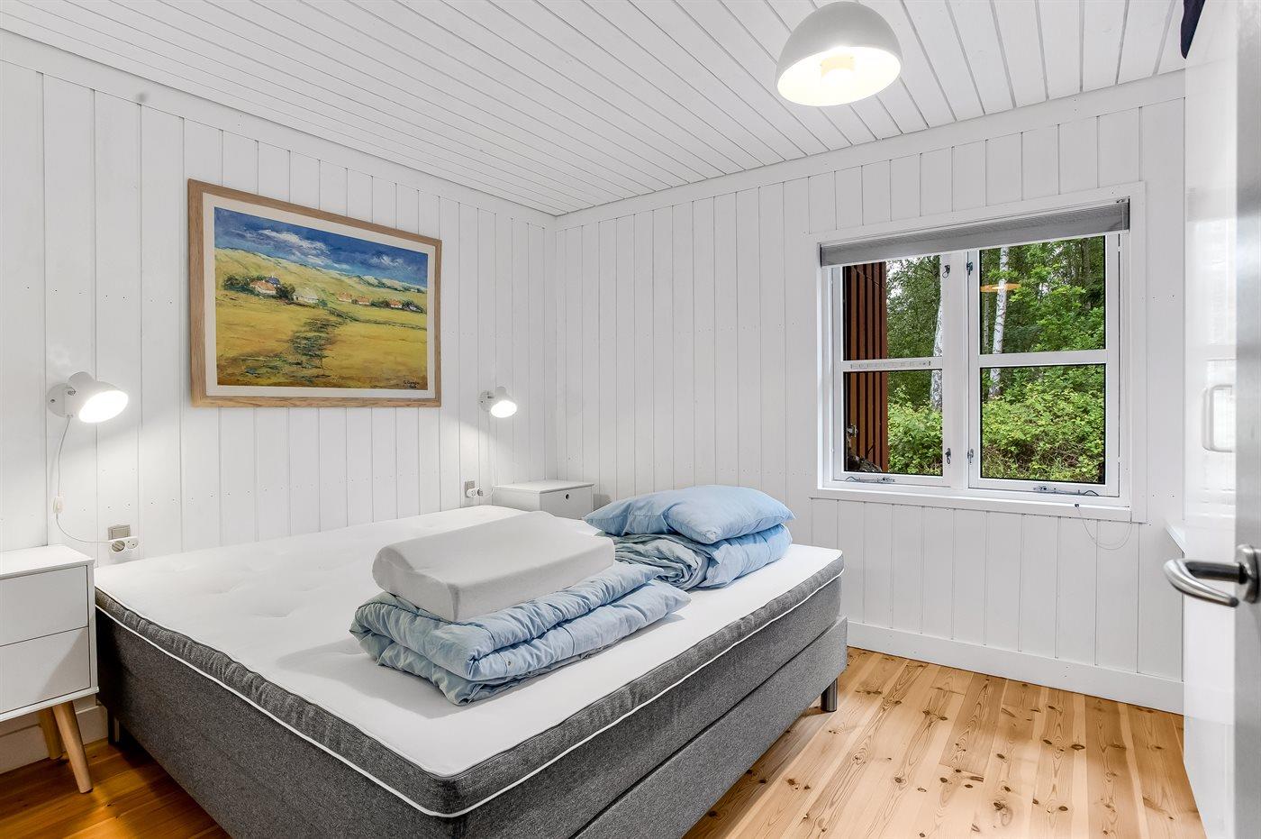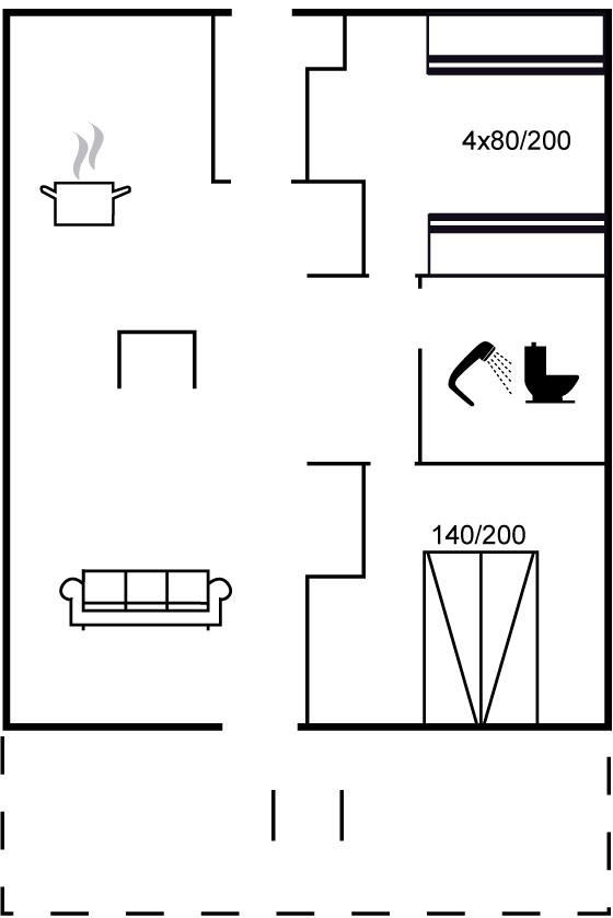 Die Schlafplätze verteilen sich auf 2 Schlafräume. 2 Schlafplätze in einem Doppelbett. 4 Schlafplätze in Etagenbetten. Ferner steht ein Kinderbett zur Verfügung.