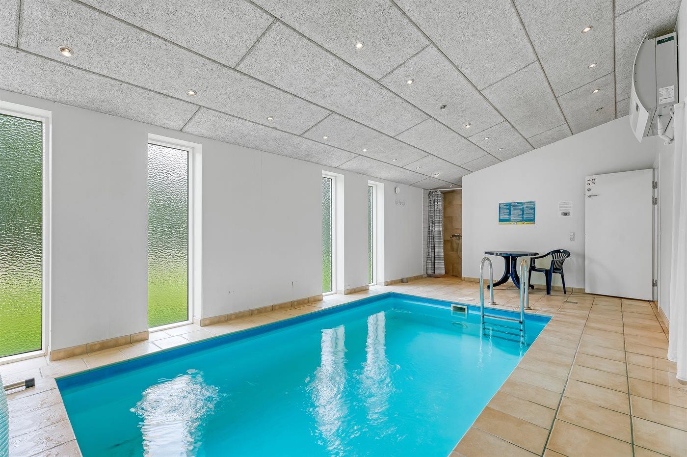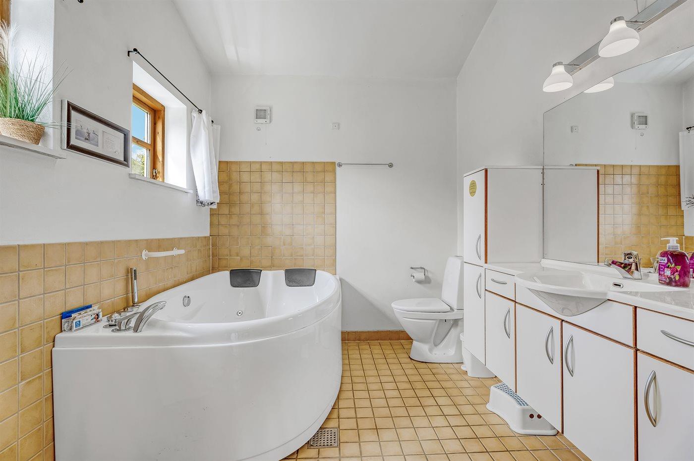 Weiter gibt es einen Hauswirtschaftsraum, eine große und ganz neue Wohnküche, ein Wohnzimmer mit TV, WLAN, deutschen und dänischen Kanälen sowie einer Spielkonsole. Ein Badezimmer mit unter anderem einem Whirlpool liegt neben dem Wohnzimmer. Im 1. Stock befinden sich drei Schlafzimmer und ein Flur mit Ausgang zum Balkon. Es gibt zwei Badezimmer im Haus sowie eine Dusche im Poolraum und zwei Gäste-WCs sowie eine kombinierte Waschmaschine/Trockner.