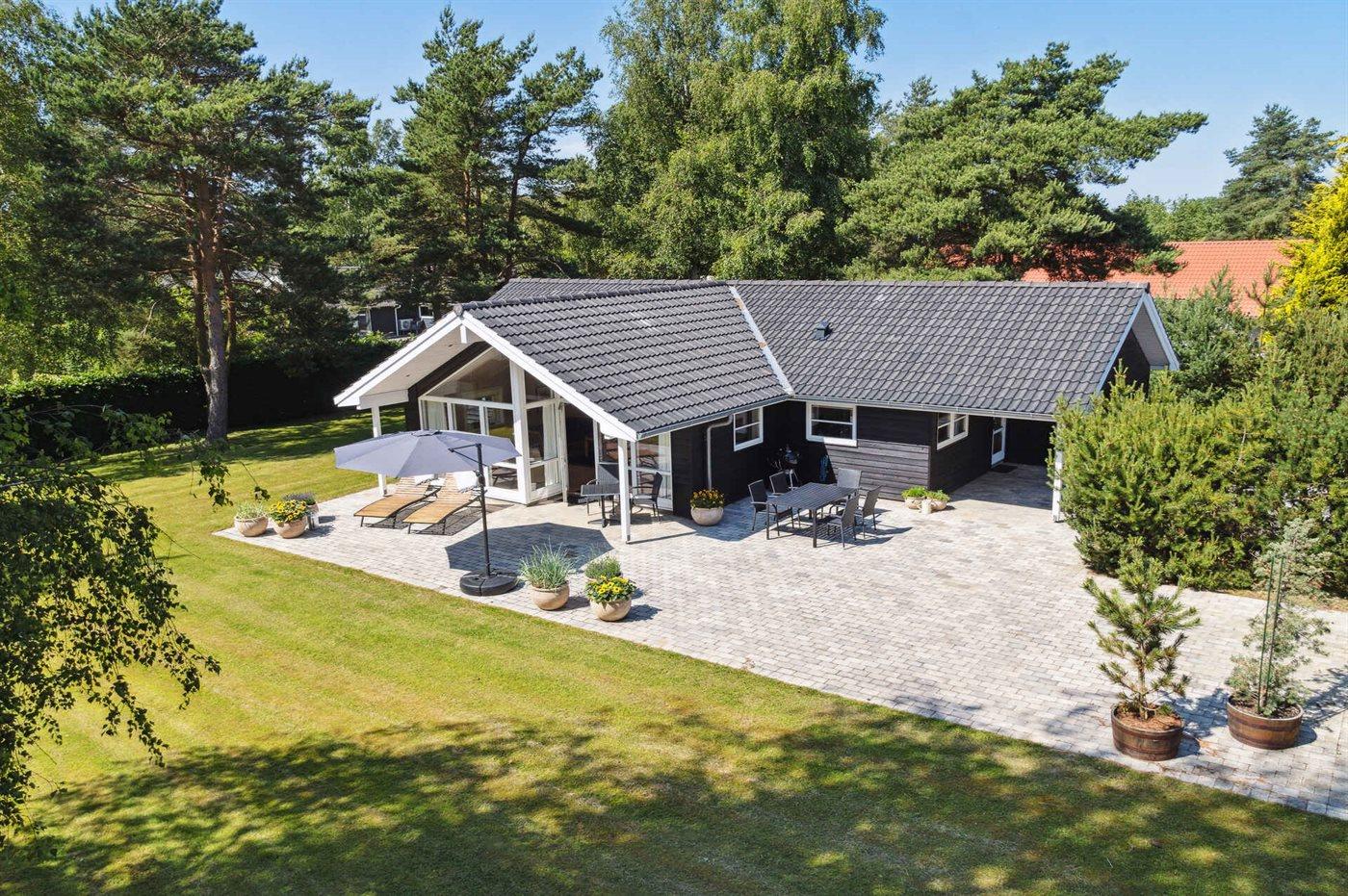 Die Ferienunterkunft liegt auf einem 903 m² großen Gartengrundstück. Die Entfernung zum Meer beträgt 600 m. Es gibt einen Badesteg in der Nähe. Die nächste Einkaufsmöglichkeit liegt 100 m entfernt. In einem Abstand von 3500 m gibt es einen Golfplatz. Es steht ein offenes Terrassenareal zur Verfügung. Außerdem gibt es überdachte Terrasse. Geräteraum. Sandkasten. Trampolin.Lagerfeuerstelle. Außendusche. Es stehen 2 Grills zur Verfügung. Es stehen ein Holzkohlegrill und ein großer Gasgrill zur Verfügung. Es ist ein Ladestecker für Elektroautos installiert. Mit einer Ladeleistung von 22 kW. Parkplatz auf dem Grundstück.