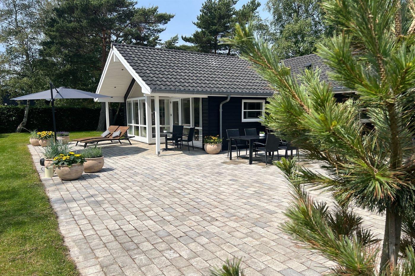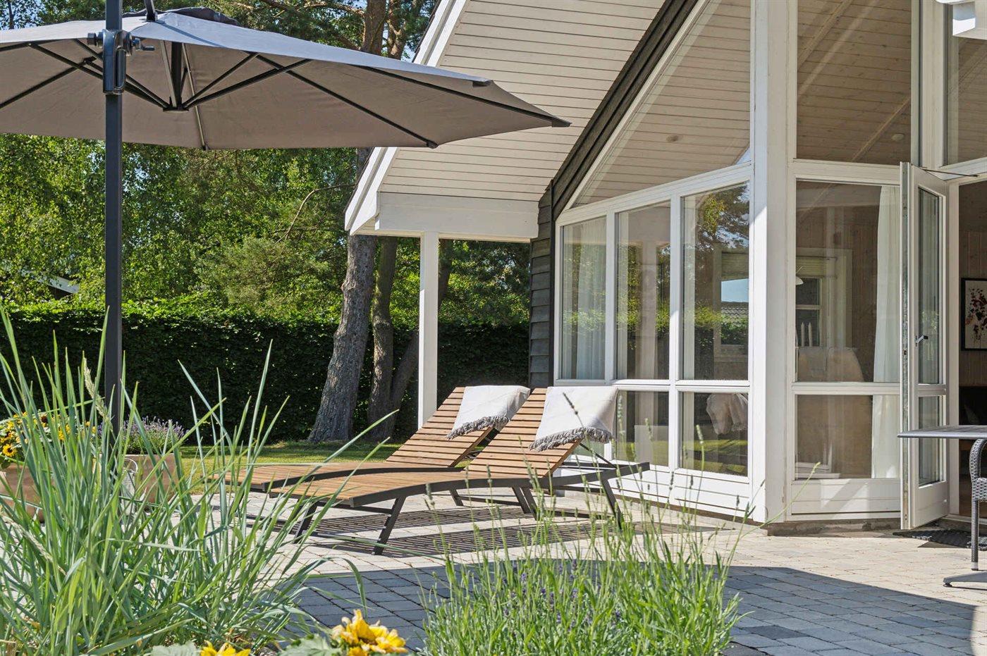 Das Haus ist gemütlich eingerichtet und verfügt über eine große Terrasse, die teils überdacht, teils offen ist, mit ausreichend Platz zum Entspannen in Lounge-Möbeln und auf Liegestühlen usw. Zudem gibt es einen Grill für die schönen Sommerabende. Unter der abgeschirmten Außendusche kann man sich nach einem Strandbesuch oder einem Ballspiel auf dem schönen Grundstück erfrischen.