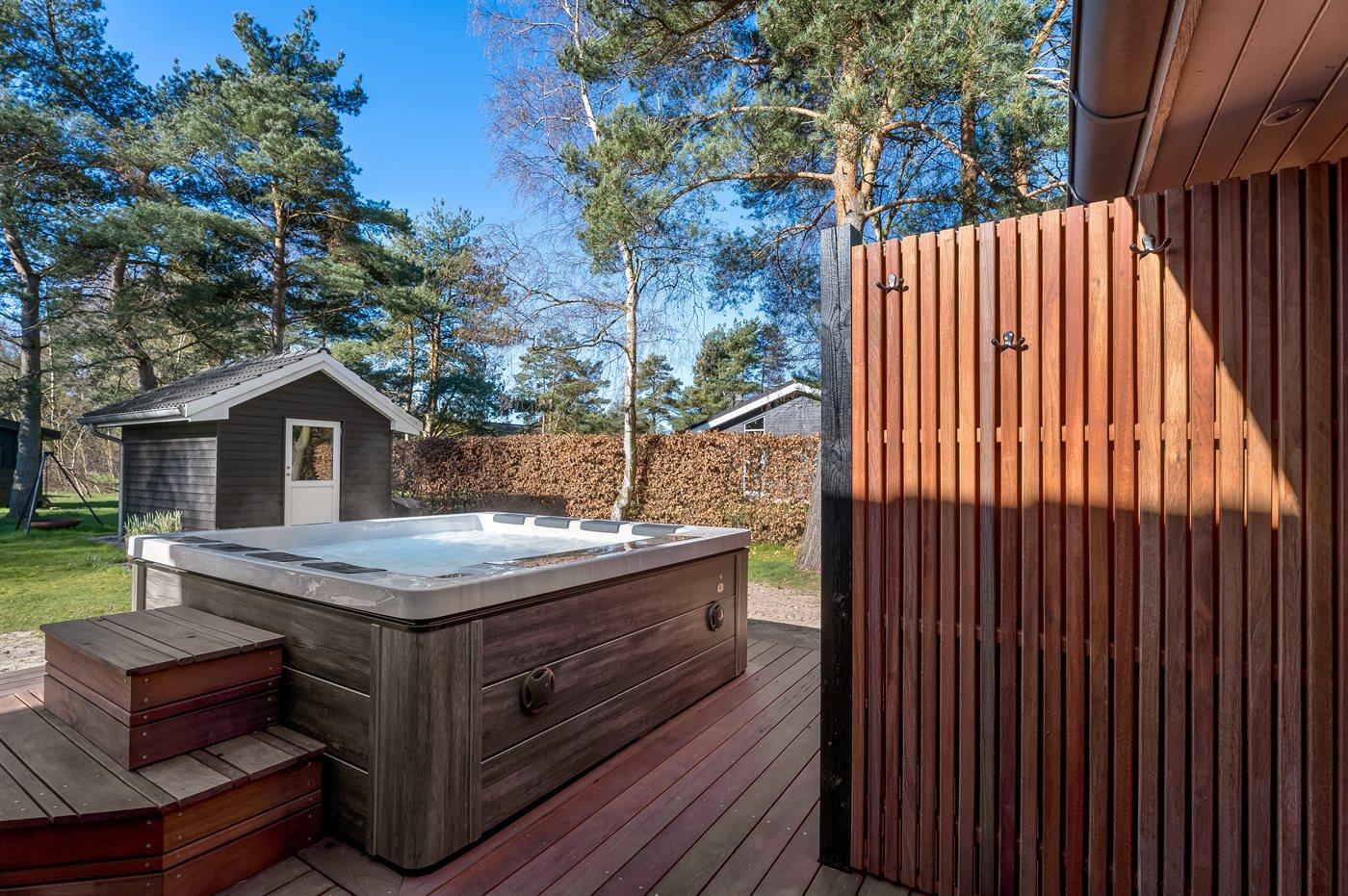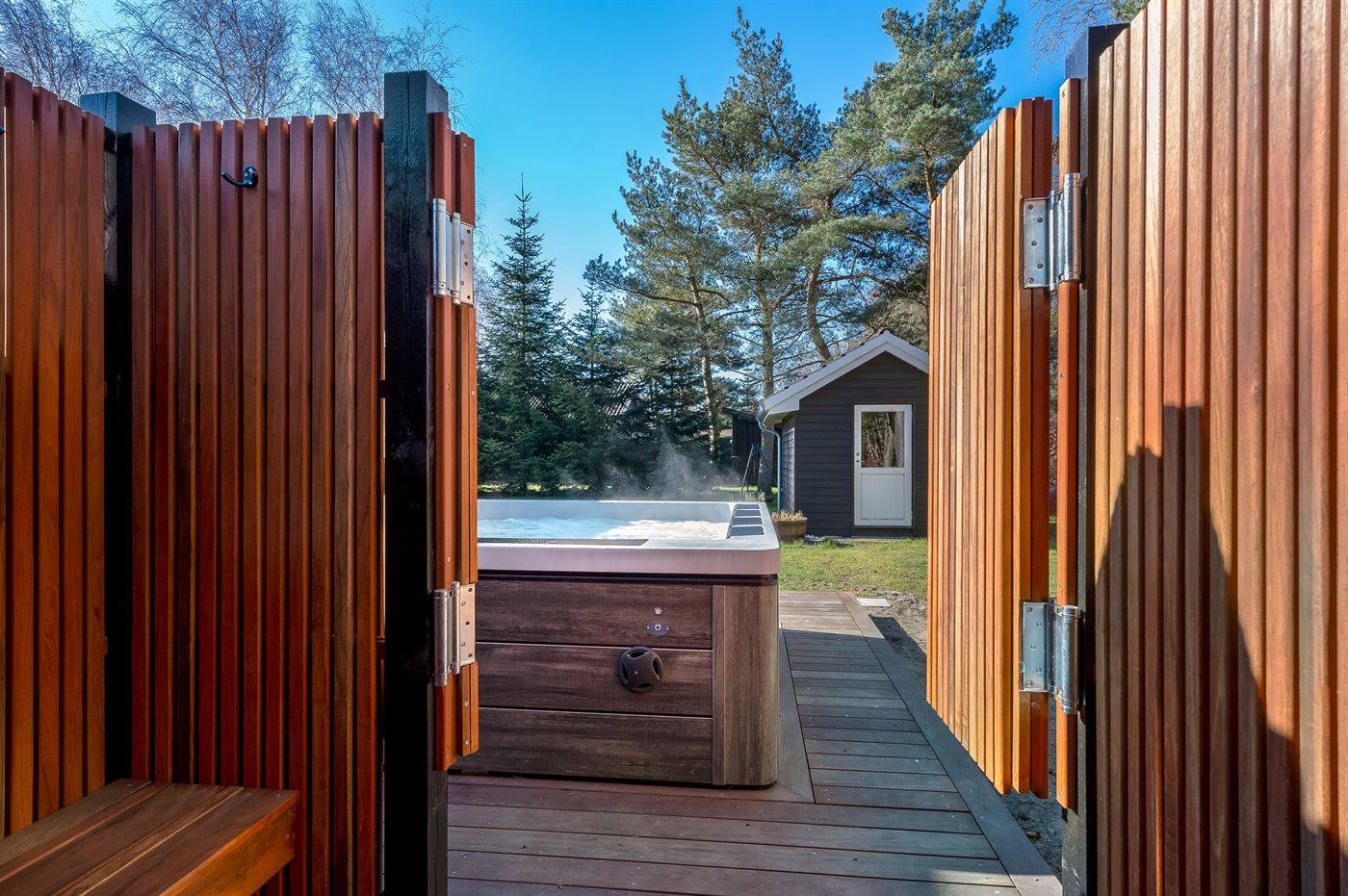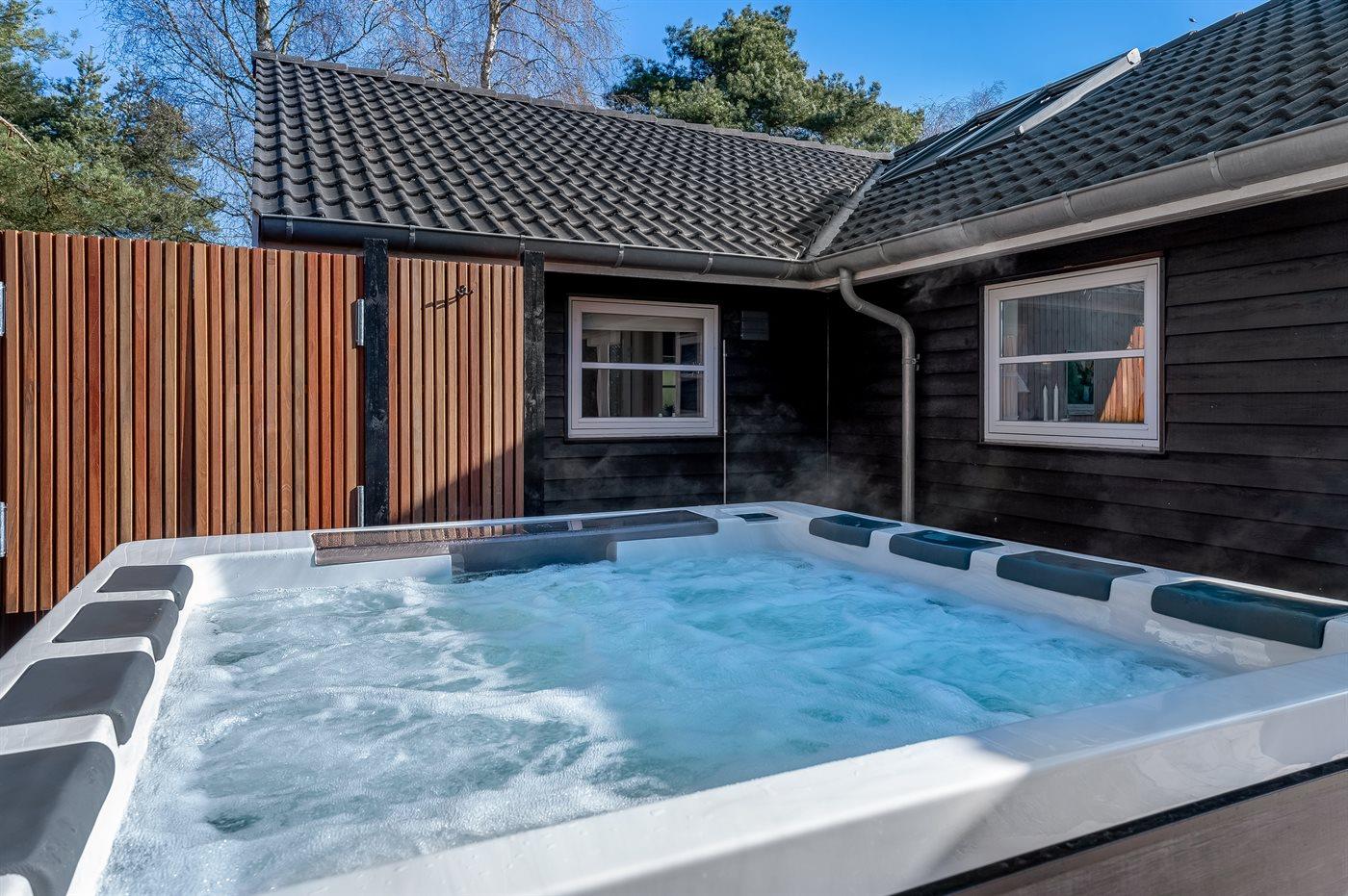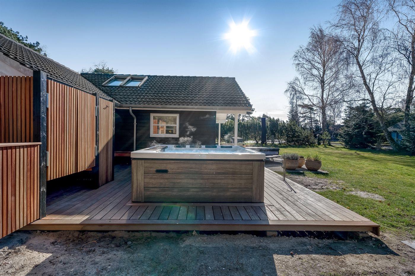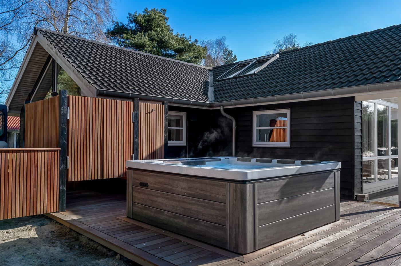 Ein schönes und gepflegtes Ferienhaus mit Platz für 6 Personen und einem herrlichen, großen Außen-Whirlpool – ebenfalls für 6 Personen. Der Whirlpool ist beheizt, sodass man das ganze Jahr über – auch bei Kälte – darin sitzen und die Sterne beobachten kann.