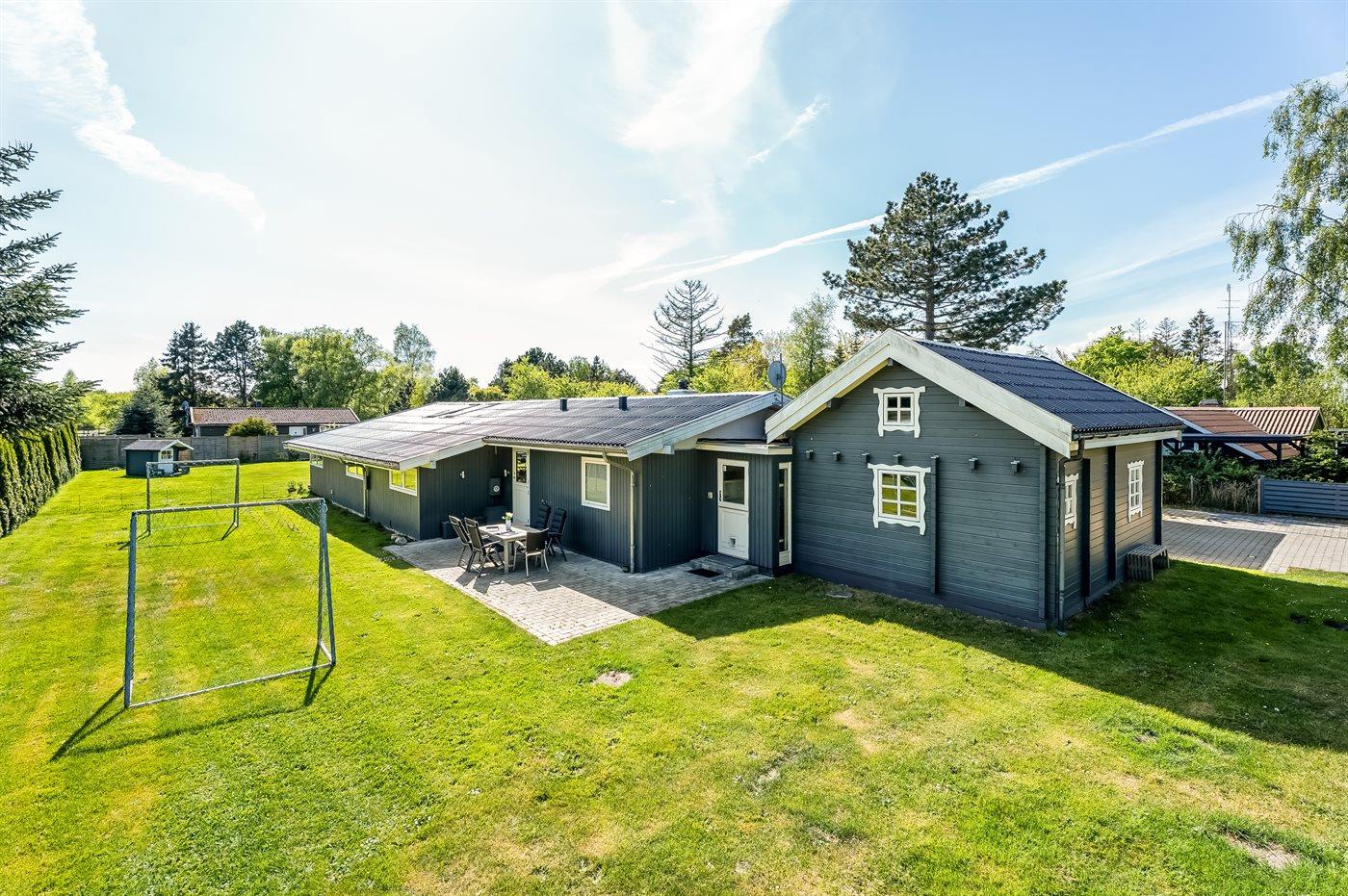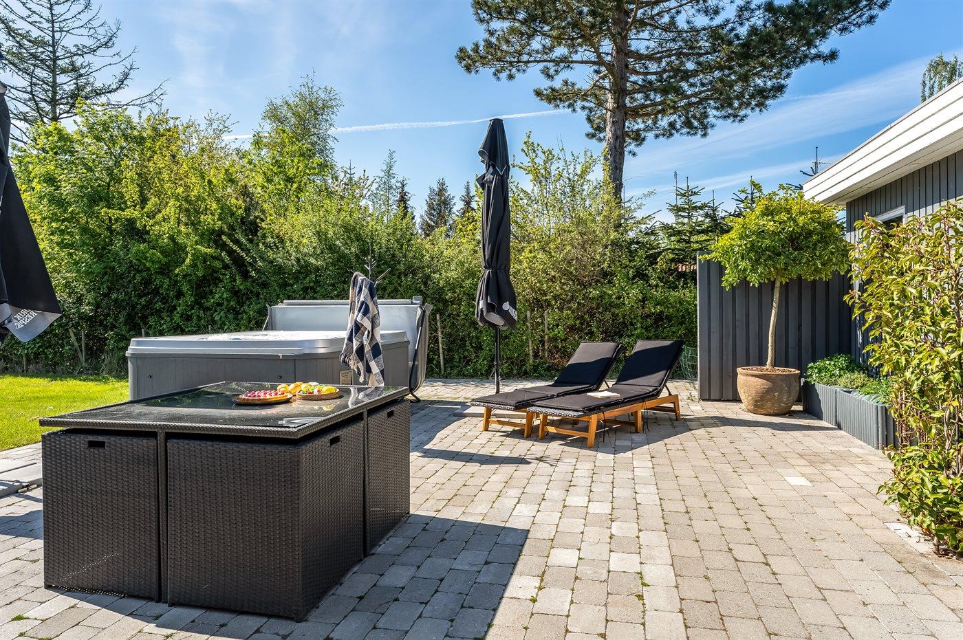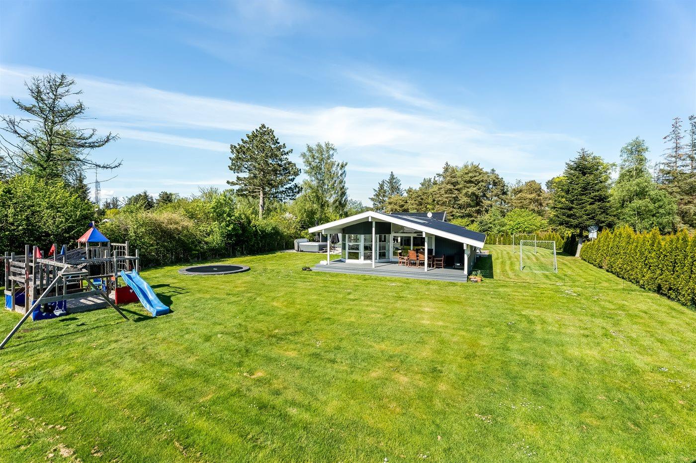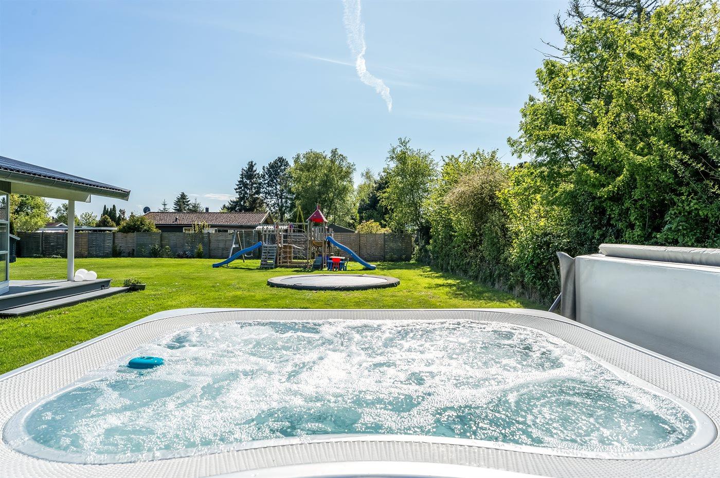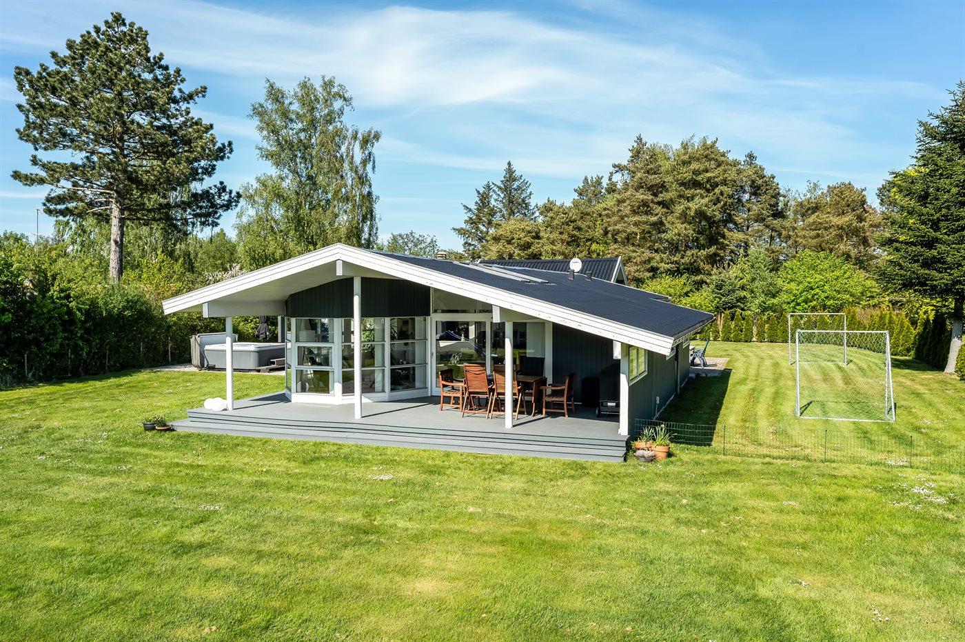 Modernes Ferienhaus in Marielyst mit Whirlpool, Spielbereich und Garten für entspannte Familienferien.