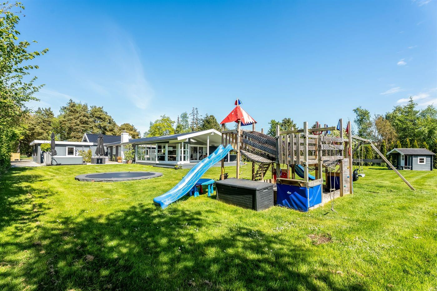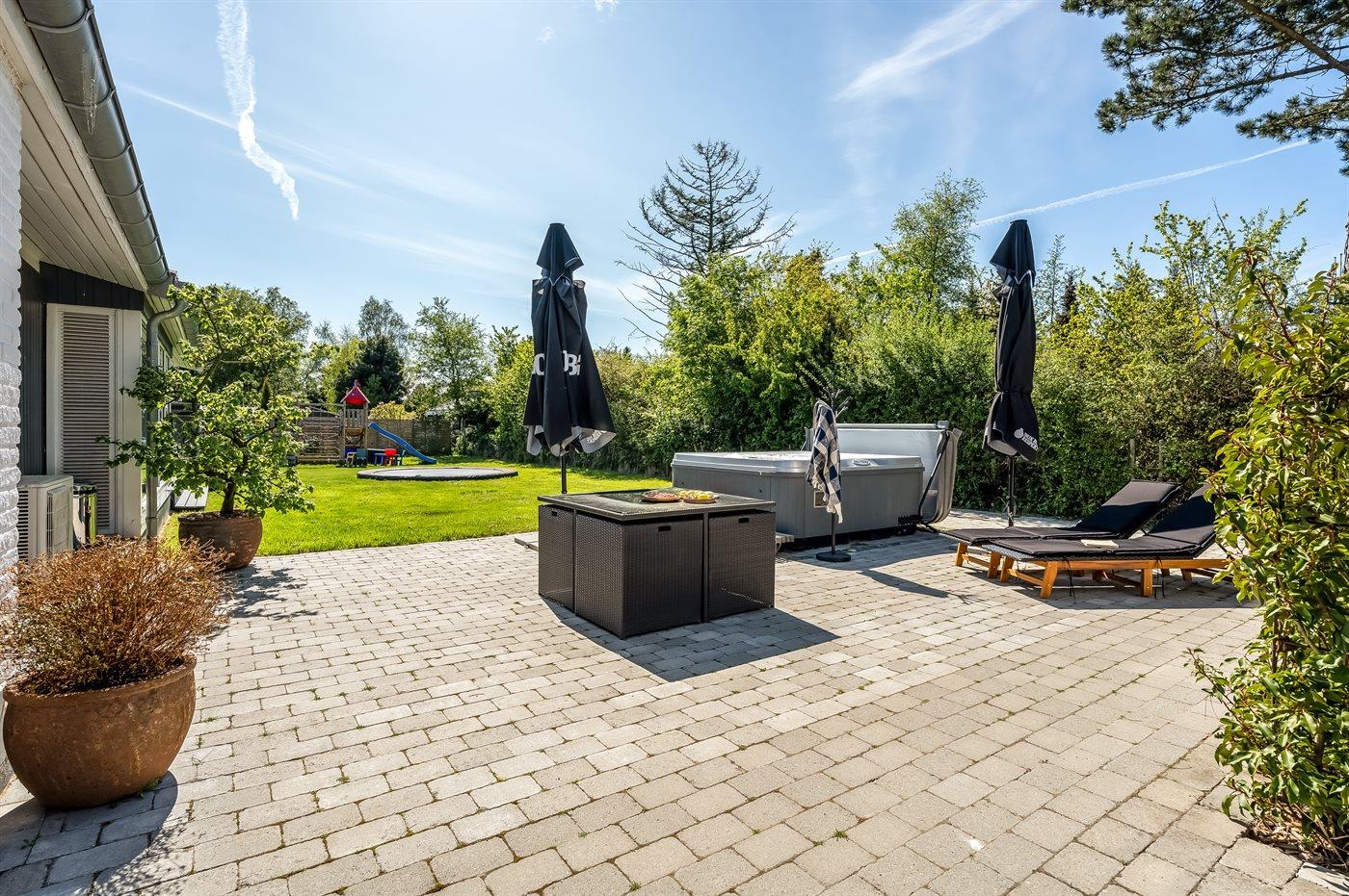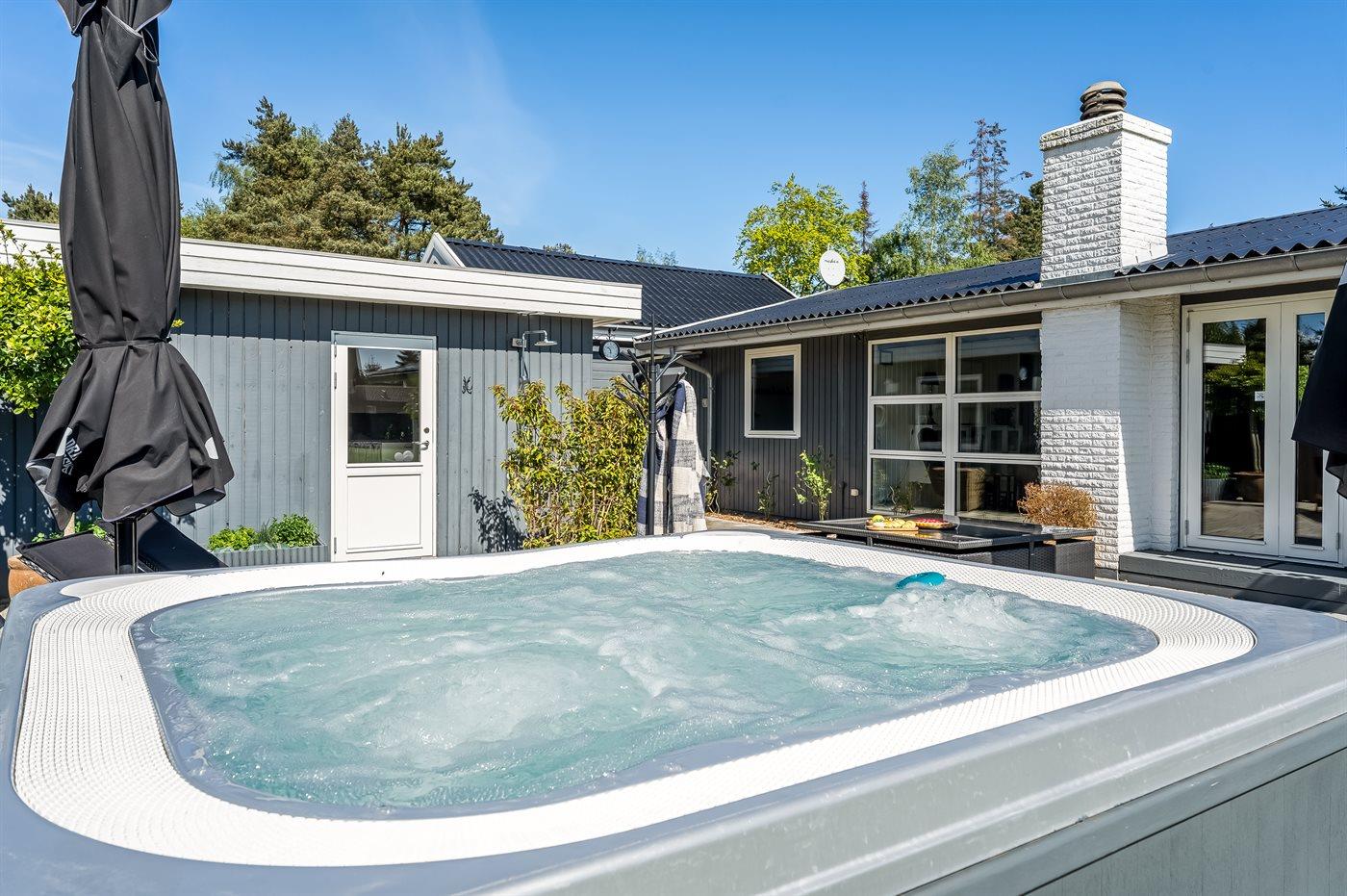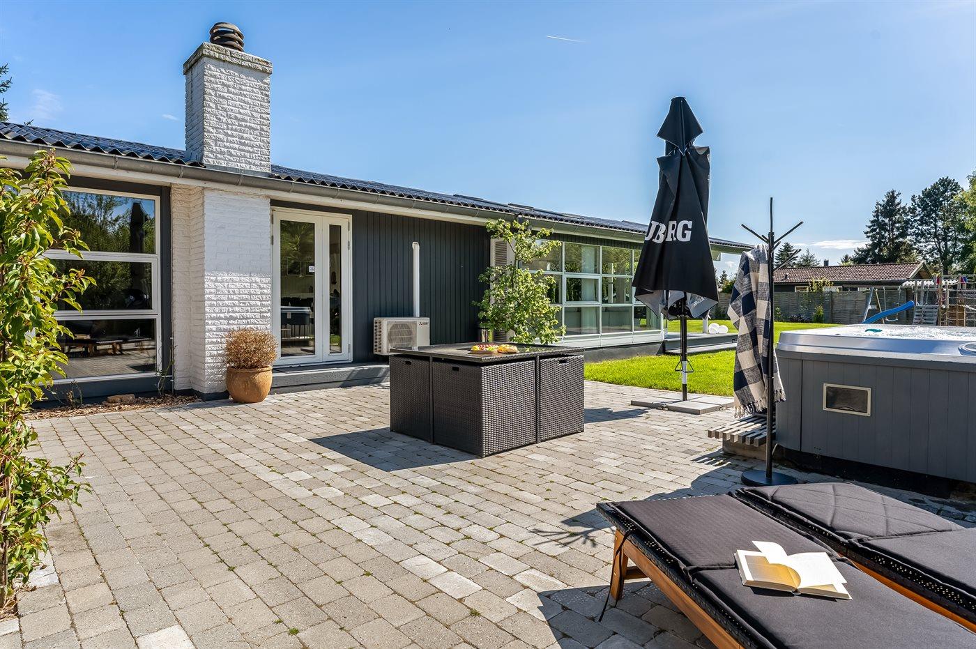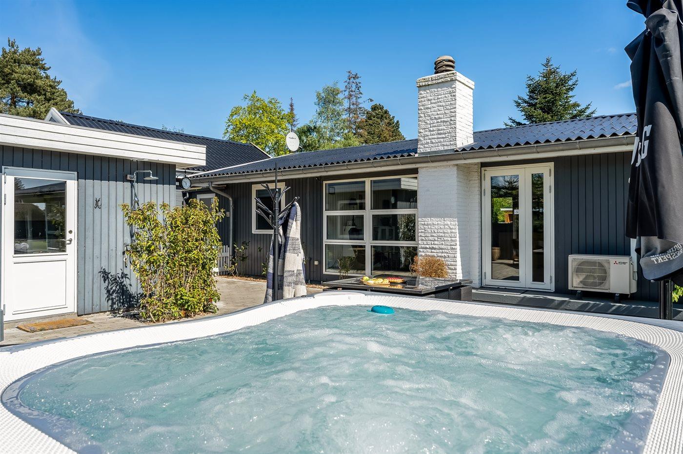 Modernes Ferienhaus in Marielyst mit Whirlpool, Spielbereich und Garten für entspannte Familienferien.