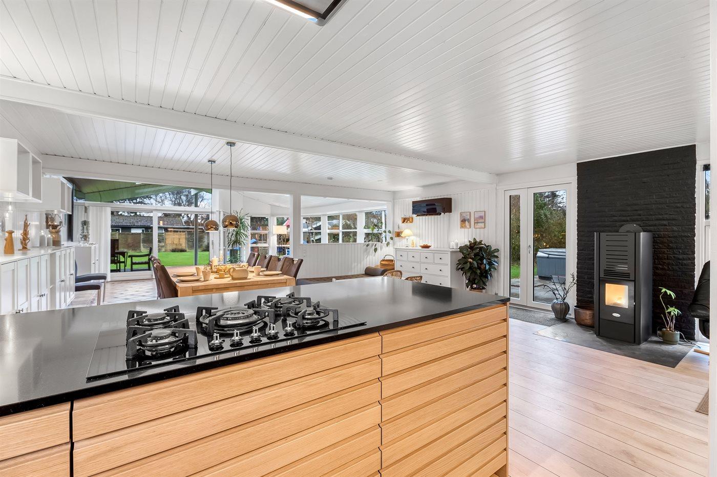 Im Ferienhaus gibt es zahlreiche Möglichkeiten, um gemütliche und lustige Urlaubsmomente miteinander zu verbringen. Im offenen Küchen- und Wohnbereich kann man sich zum Kochen, Spielen oder Filmeschauen treffen. Das Knistern des Pelletkamins sorgt dabei für eine besonders gemütliche Urlaubsatmosphäre.