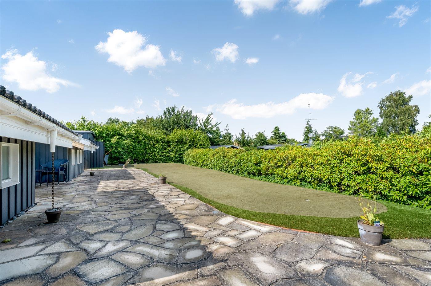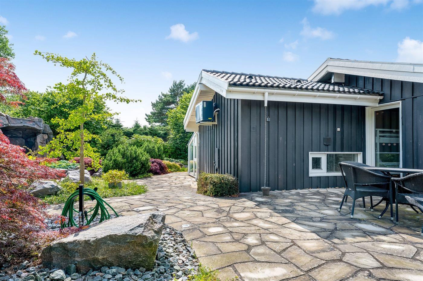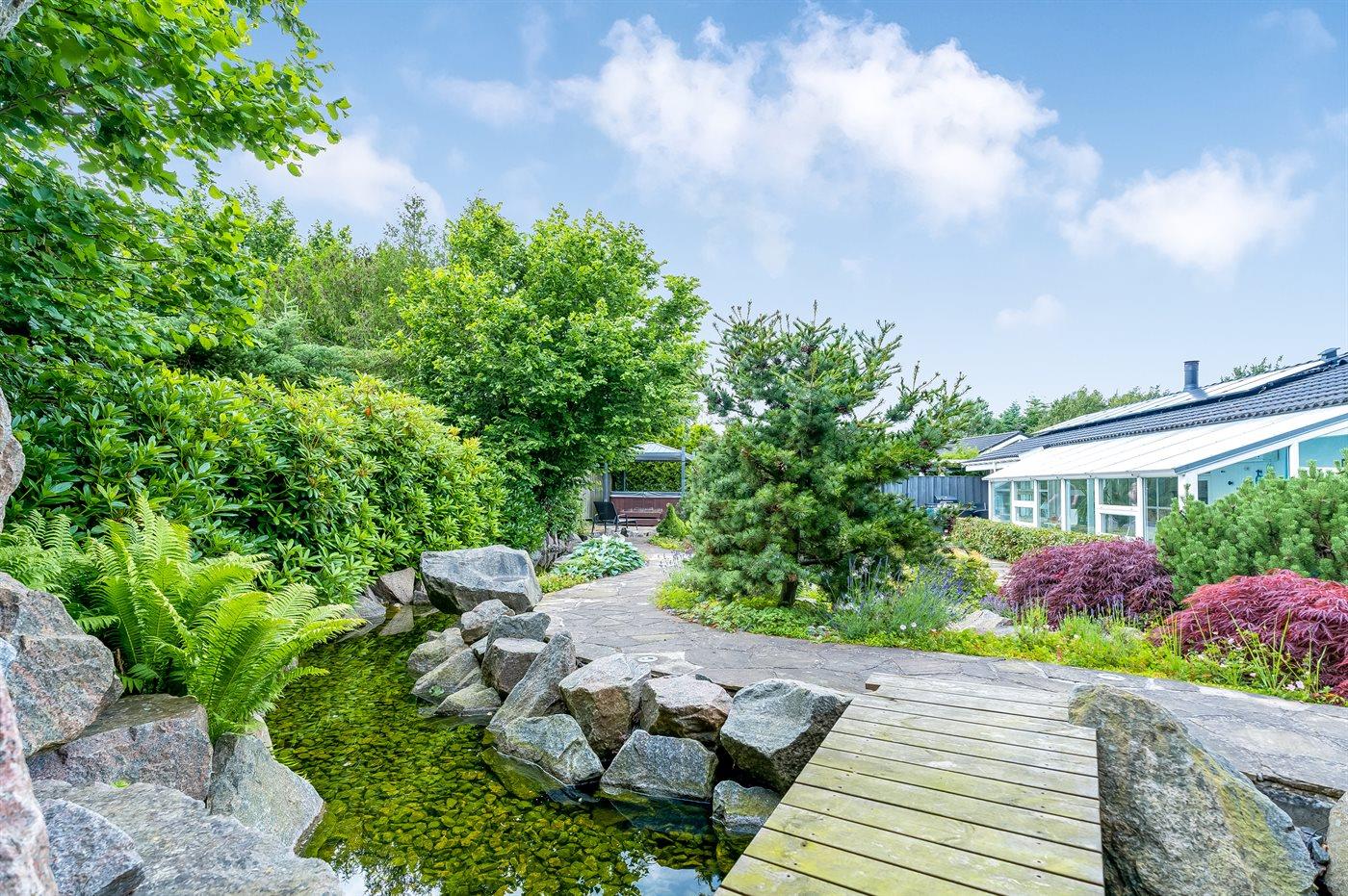 Das Haus besticht mit seinem, von Italien inspiriertem Garten aus Granit. Dort findest du einen Bachlauf mit Springbrunnen, ein Putting Green, mehrere schöne Sonnenplätze – und nicht zu vergessen die große Grotte, die an heißen Sommertagen angenehm kühl ist und im Winter mit einer Feuerschale beheizt werden kann.