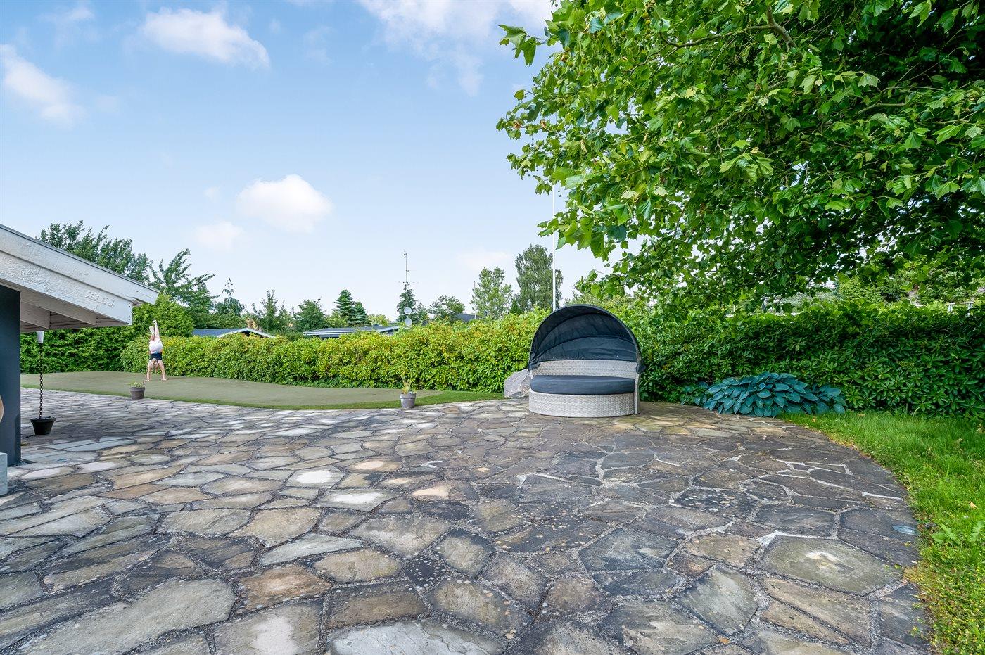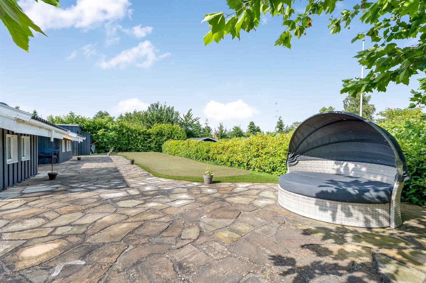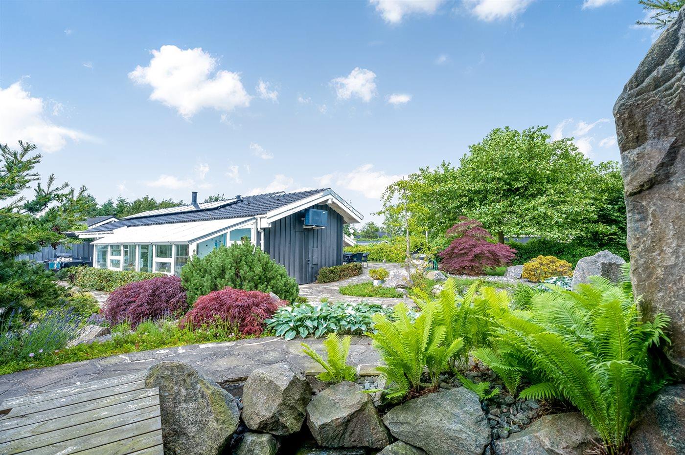Das Haus besticht mit seinem, von Italien inspiriertem Garten aus Granit. Dort findest du einen Bachlauf mit Springbrunnen, ein Putting Green, mehrere schöne Sonnenplätze – und nicht zu vergessen die große Grotte, die an heißen Sommertagen angenehm kühl ist und im Winter mit einer Feuerschale beheizt werden kann.