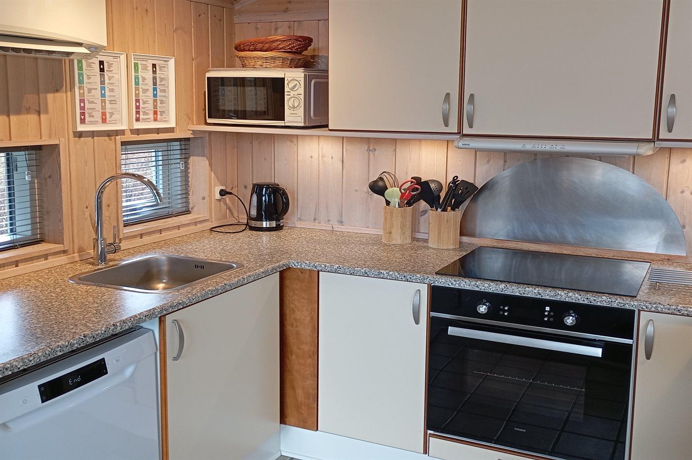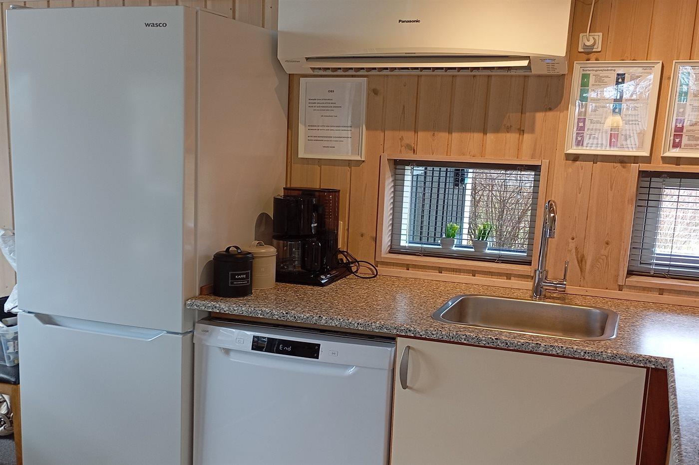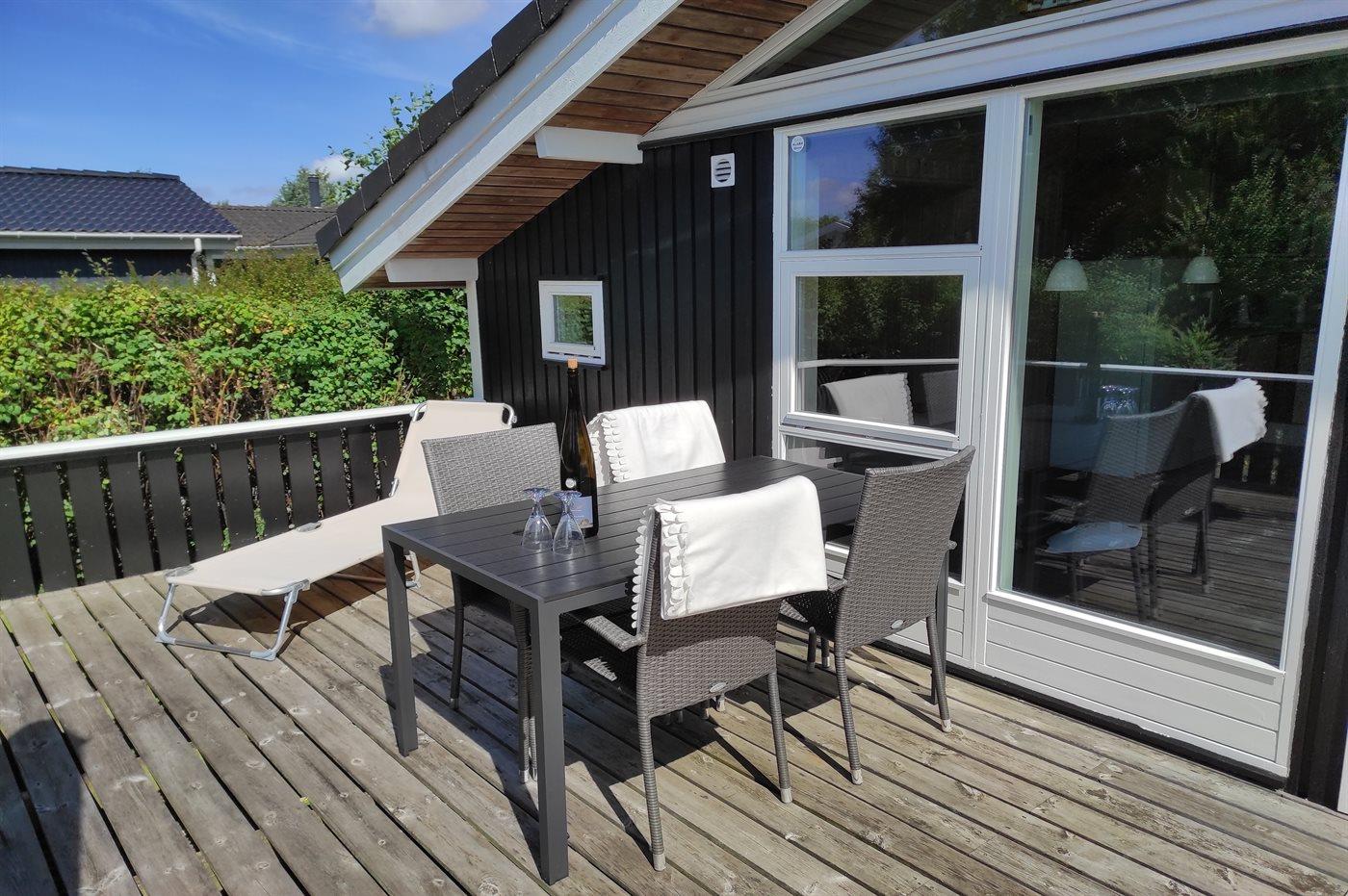Besonders schönes Ferienhaus aus Holz von 2005 mit Whirlpool und Sauna. Das helle und einladende Haus ist auf einem Naturgrundstück dicht an einem der kinderfreundlichsten Sandbadestrände Dänemarks aufgeführt. Zum Haus gehört eine teilweise überdachte Terrasse mit Gartenmöbeln. Innen gibt es schöne Holzböden sowie hell gebeizte Holzwände und -decken. Das herrliche Badezimmer hat beheizbaren Klinkerboden, 2-Pers. Whirlpool, Duschnische und Zutritt zur Sauna. Gästetoilette. Die schöne und gut ausgestattete Küche enthält u. a. Geschirrspüler, Mikrowelle, große Tiefkühltruhe und großen Kühlschrank, und Herd mit Warmluftofen und Ceran-Feld. Die Küchenabteilung ist mit dem hellen und nett möblierten Wohnzimmer mit großen Fenstern kombiniert. Hier finden Sie Kaminofen, Stereoanlage mit CD-Spieler, DVD-Spieler und TV. Die Schlafplätze des Hauses verteilen sich auf 2 Zimmer mit Doppelbett und 1 Zimmer mit 2 Einzelbetten. Darüber hinaus gibt es Alkoven mit 2 Schlafplätzen im Wohnzimmer sowie offenes Obergeschoss mit 2 Schlafplätzen für Kinder. Zur Ausstattung des Hauses gehören auch energiegerechte Wärmepumpe, Waschmaschine und Wäschetrockner sowie kostenlose, kabellose Internetverbindung. Draußen gibt es Sandkiste und Schaukel für die kleinsten Feriengäste. Ein helles und freundliches Ferienhaus dicht an Einkaufsmöglichkeiten, guten Restaurants, Sehenswürdigkeiten, Golf, Bowling, Zoo u.a.m.
