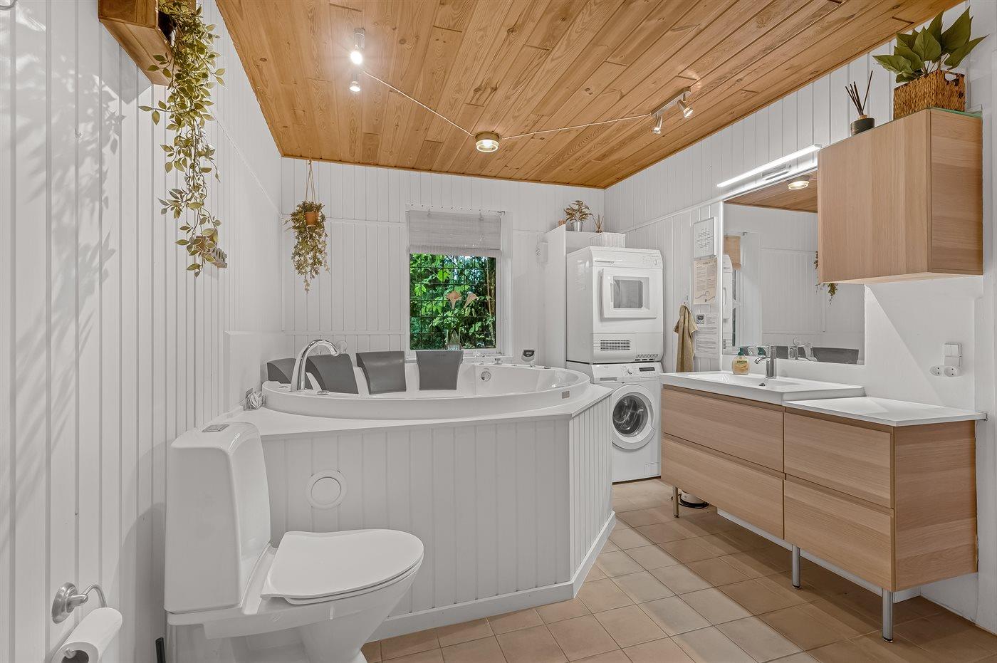Es gibt 2 Badezimmer mit Duschnische und 3 Toiletten, davon 1 Gästetoilette. Fußbodenheizung in 2 Badezimmern. Fußbodenheizung in der Gästetoilette. Es steht eine Sauna zur Verfügung in der Sie sich so richtig entspannen können.