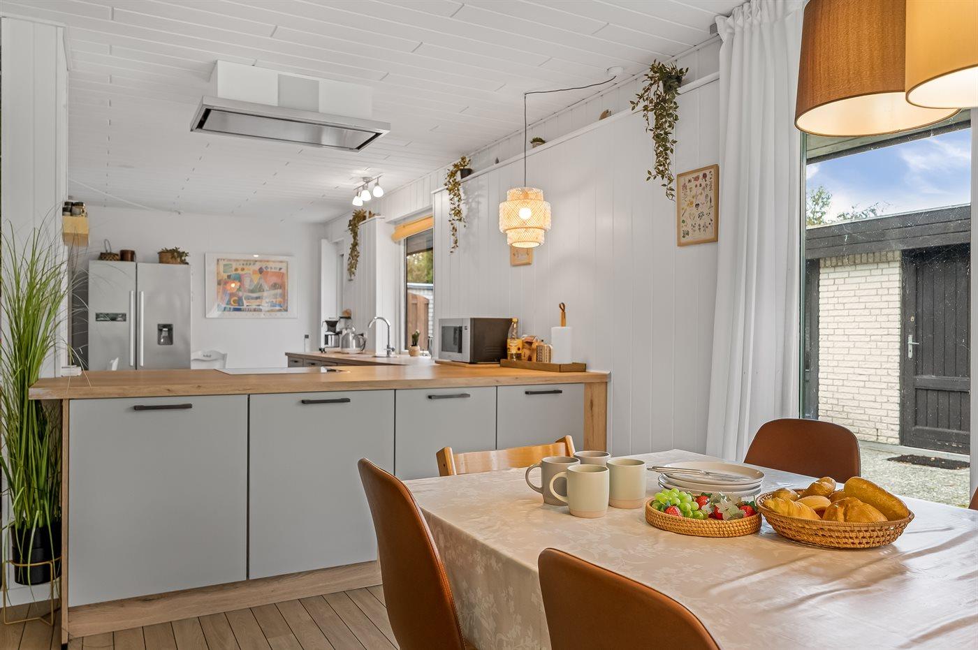 Geräumiges, älteres Ferienhaus für 12 Personen mit Whirlpool, Sauna und Hobbyraum auf einem großen Naturgrundstück in Marielyst gelegen. Im Obergeschoss ist ein Badezimmer, eine Gästetoilette und sechs Schlafzimmer sowie ein Balkon mit schönem Blick auf den Garten vorhanden. Das Ferienhaus liegt etwa 500 Meter vom Badestrand von Marielyst und rund 300 Meter vom Kjørups Kro entfernt.