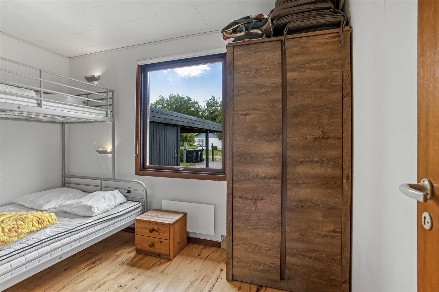 Die Schlafplätze verteilen sich auf 2 Schlafräume. 2 Schlafplätze in einem Doppelbett. 3 Schlafplätze in Etagenbetten.