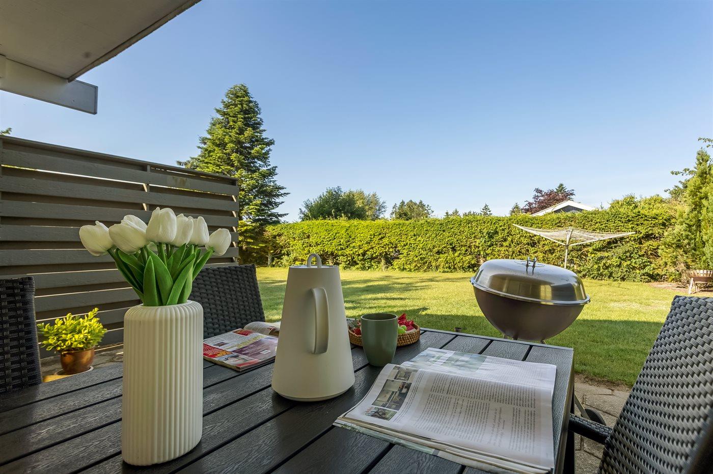 Die Ferienunterkunft liegt auf einem 1048 m² großen Gartengrundstück. Die Entfernung zum Meer beträgt 400 m. Die nächste Einkaufsmöglichkeit liegt 300 m entfernt. Es steht ein 24 m² Terrassenareal zur Verfügung. Außerdem gibt es 12 m² überdachte Terrasse. Es steht ein Carport zur Verfügung.