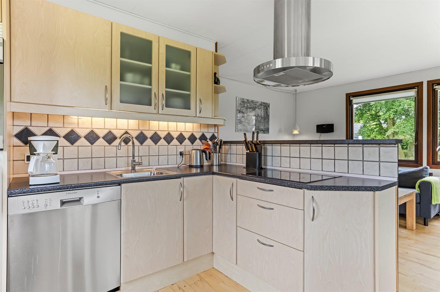 Die Küche ist mit Kühlschrank ausgestattet. Im Schuppen steht ein zusätzlicher Kühlschrank.. Außerdem gibt es 4 Keramik-Kochfelder, Umluftofen sowie Geschirrspüler.