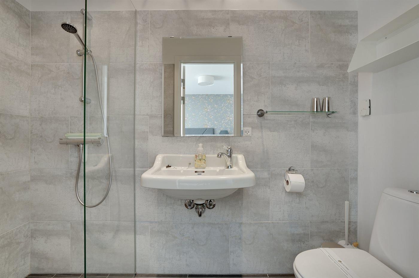 Es gibt 1 Badezimmer mit Duschnische und 1 Toilette.