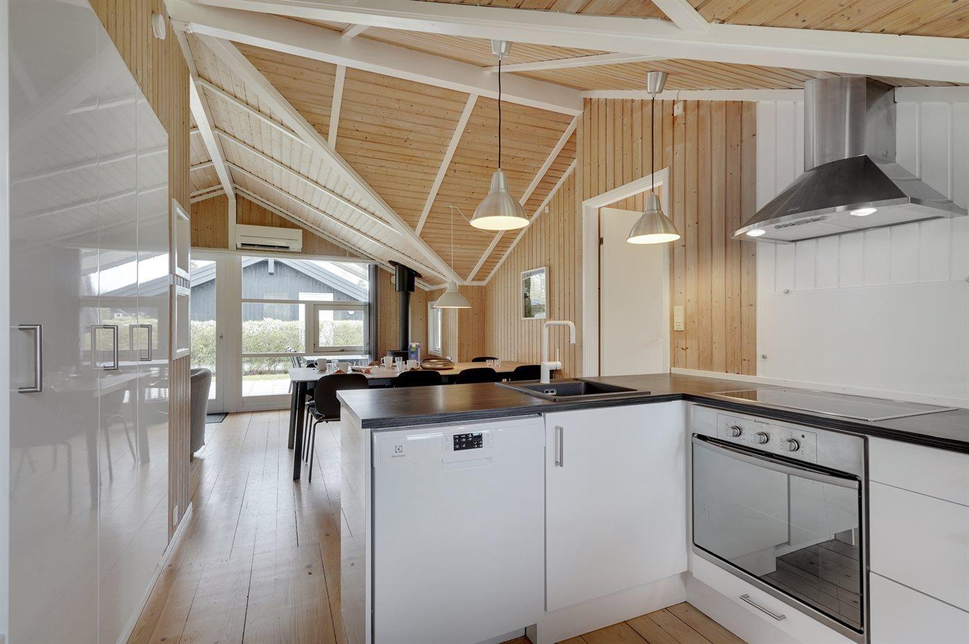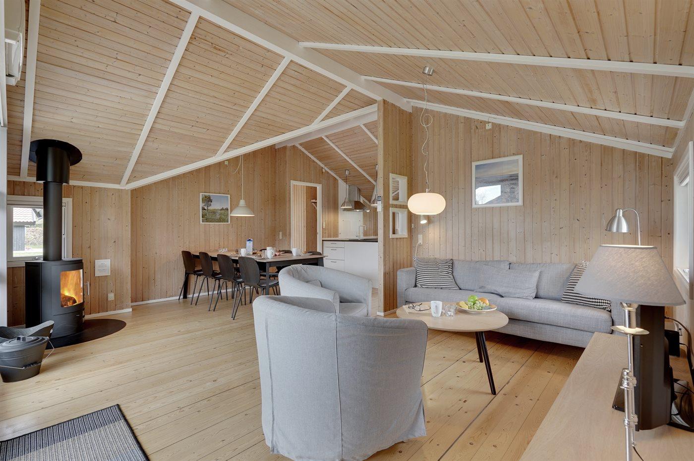 Dieses schöne und gemütliche Ferienhaus mit eigener Terrasse liegt zusammen mit 4 anderen Ferienhäusern und 3 Ferienwohnungen auf einem großen, gemeinsamen Grundstück. Die Häuser liegen alle in einem attraktiven und naturschönen Gebiet nahe kinderfreundlichem Badestrand. Für die Kinder gibt es Schaukeln am Gemeinschaftsgelände. Im Wohnzimmer befinden sich 2 Schlafplätze im Alkoven.
