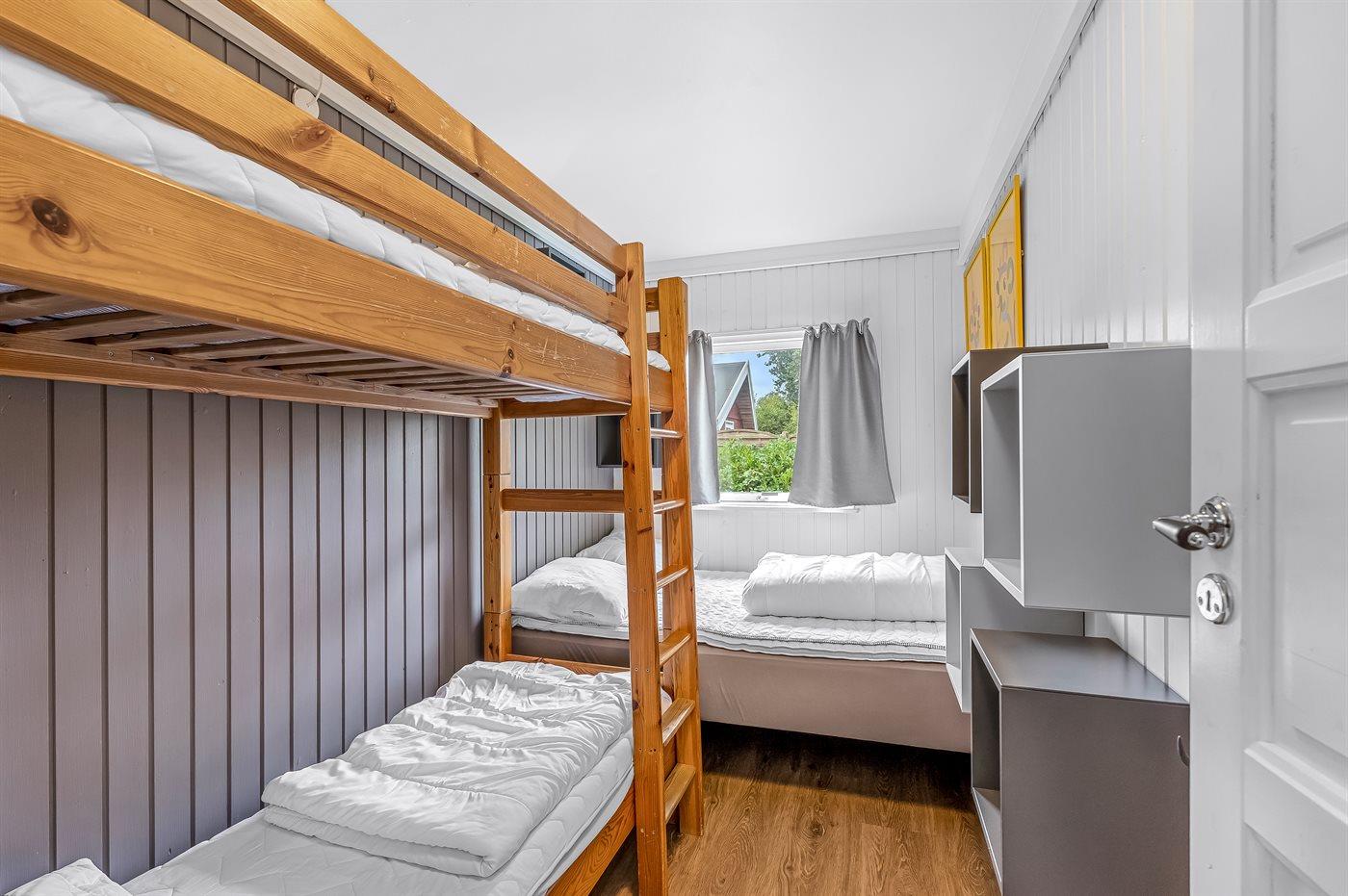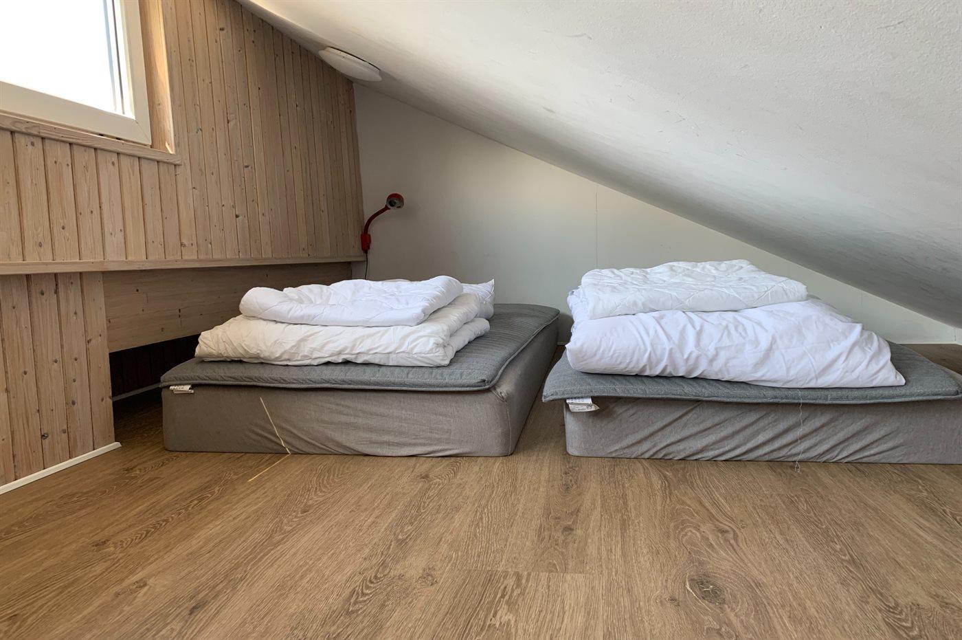 Es gibt 3 schöne Schlafzimmer und die Schlafplätze verteilen sich wie folgt: 2 Zimmer mit Doppelbett sowie 1 Zimmer mit einem breiten Einzelbett und einem Etagenbett. Außerdem gibt es ein offenes Obergeschoss mit 2 Matratzen.