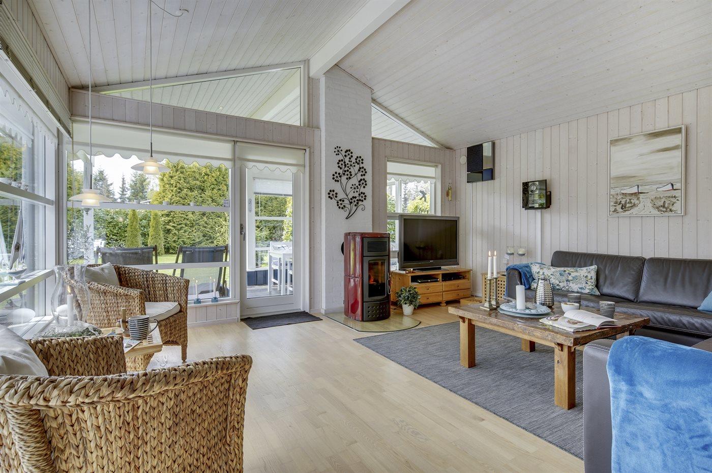 Die helle Unterkunft mit 114 m² wurde 2003 erbaut und ist mit modernem Komfort ausgestattet, darunter Fußbodenheizung im gesamten Haus, die für eine angenehme Temperatur das ganze Jahr über sorgt. Ein Holzpelletofen (6 mm Holzpellets) verbreitet zusätzlich Wärme und ”Hygge” an kühleren Tagen.
