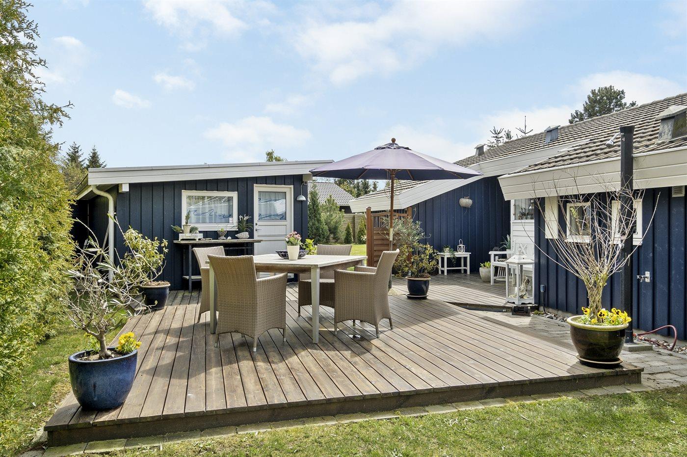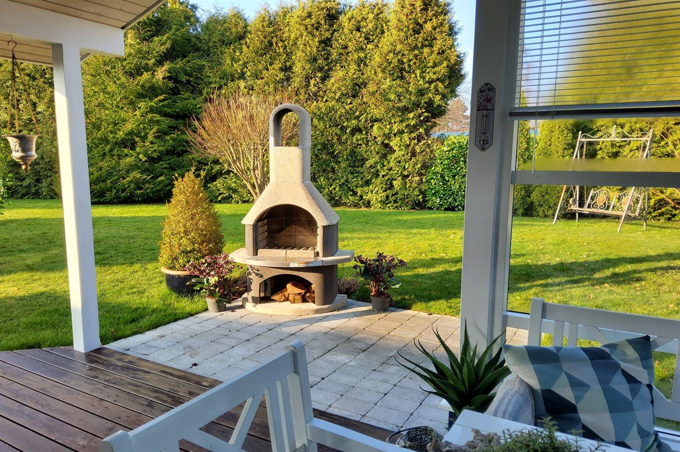 Wie bereits erwähnt, verfügt das Haus über eine schöne 50 m² große Terrasse sowie eine 12 m² große überdachte Terrasse, auf der du das Leben im Freien bei jedem Wetter genießen kannst. Eine elektrische Markise und Heizstrahler ermöglichen es, die gemütlichen Stunden im Freien zu verlängern, und für die Kinder gibt es einen Sandkasten, ein Trampolin und Fußballtore. Aus Sicherheitsgründen werden das Trampolin und einige der Gartenmöbel in den Wintermonaten verstaut. Am Haus gibt es auch eine Außendusche und einen Grill, die perfekt für die warmen Sommerabende sind.