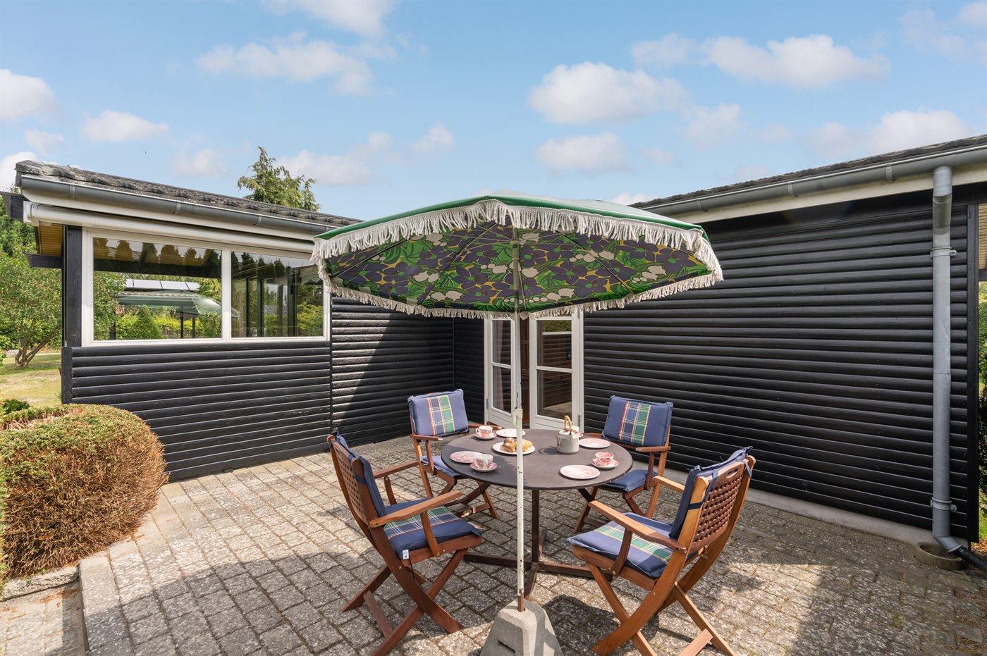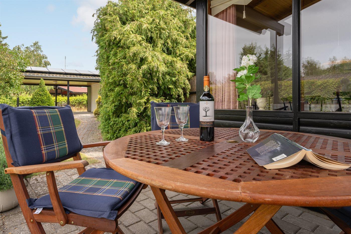 Gemütliches Ferienhaus in Marielyst, nahe dem Meer, mit Terrasse und Carport auf großem Gartengrundstück.