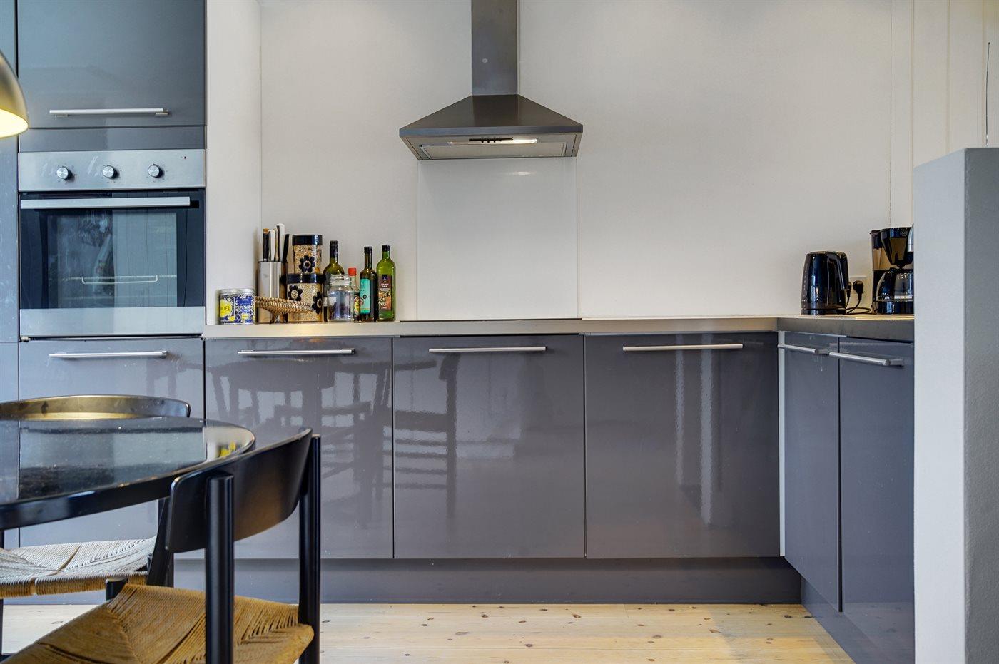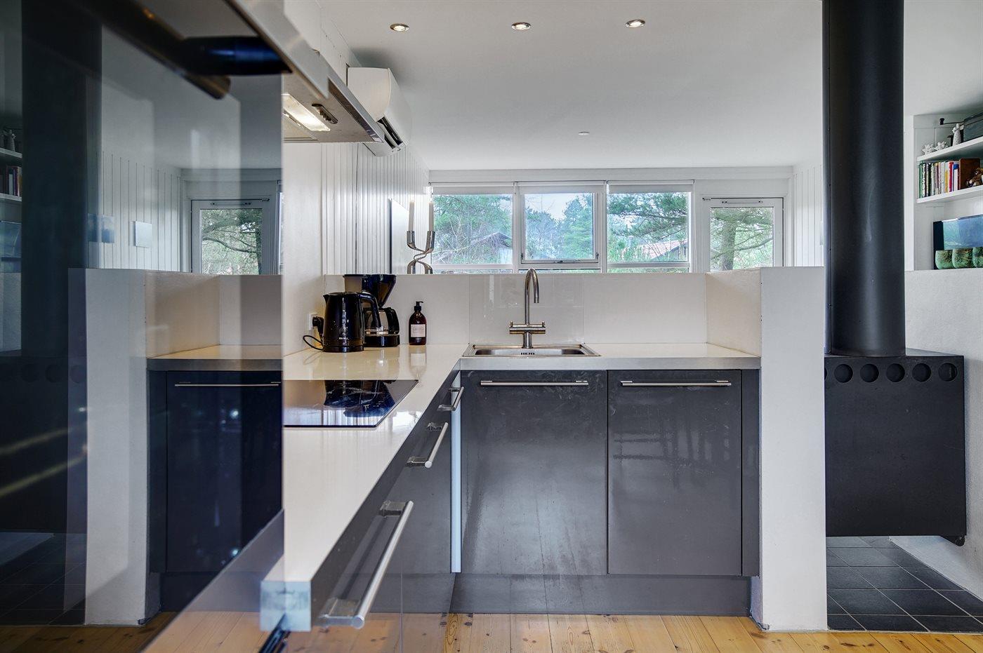 Die Küche ist mit Kühlschrank ausgestattet. Außerdem gibt es 4 Keramik-Kochfelder, Umluftofen sowie Geschirrspüler.