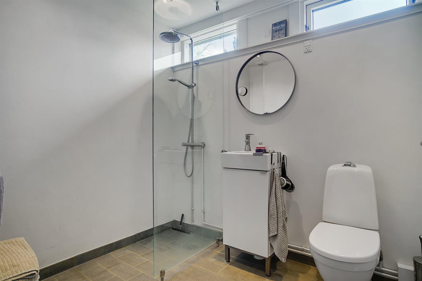 Es gibt 1 Badezimmer mit Duschnische und 1 Toilette.