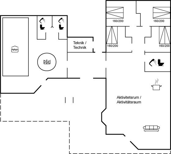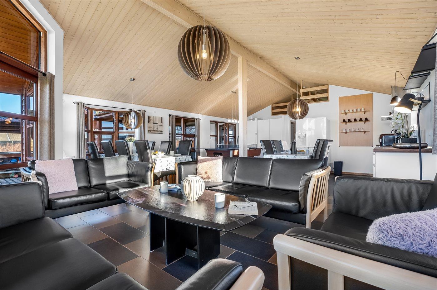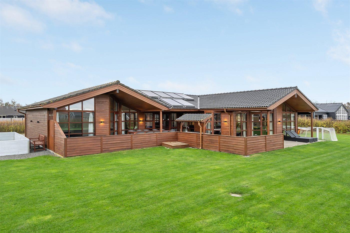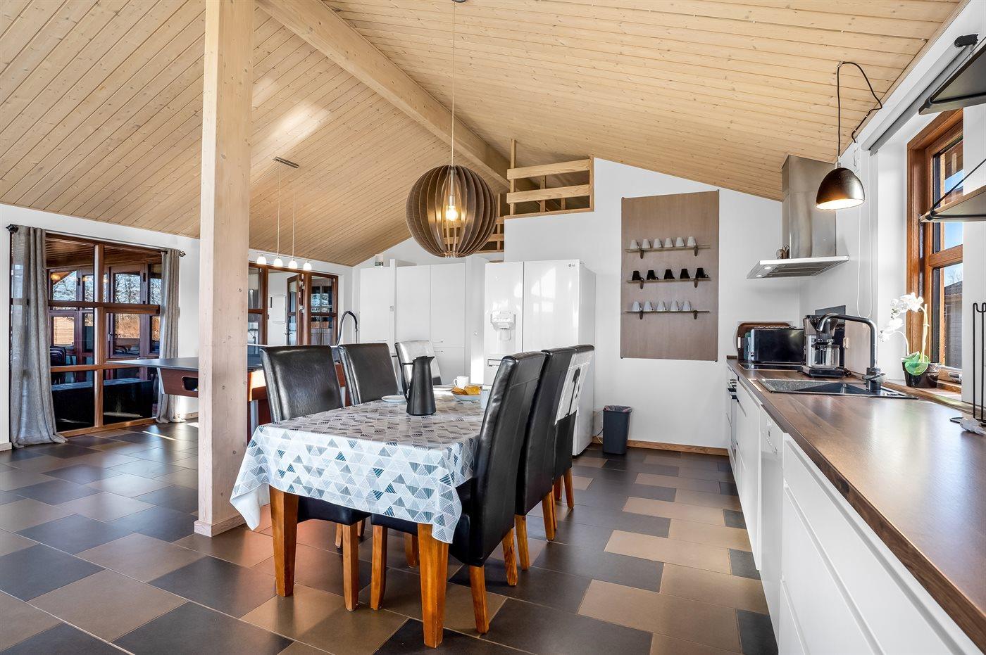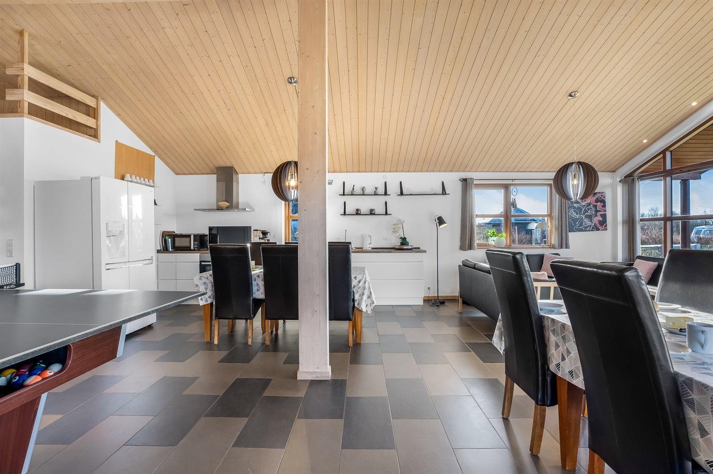 Ein schönes und familienfreundliches Ferienhaus mit Innenpool und Whirlpool sowie einem Angebot aus verschiedenen Indoor-Aktivitäten. Das Ferienhaus bietet mit einem Fußballtor und einem Minigolfplatz außerdem gute Möglichkeiten für Outdoor-Aktivitäten. Das Ferienhaus ist ein Niedrigenergiehaus, was den Verbrauch senkt. Übrigens: 4 der Schlafplätze befinden sich im offenen Obergeschoss des Hauses.