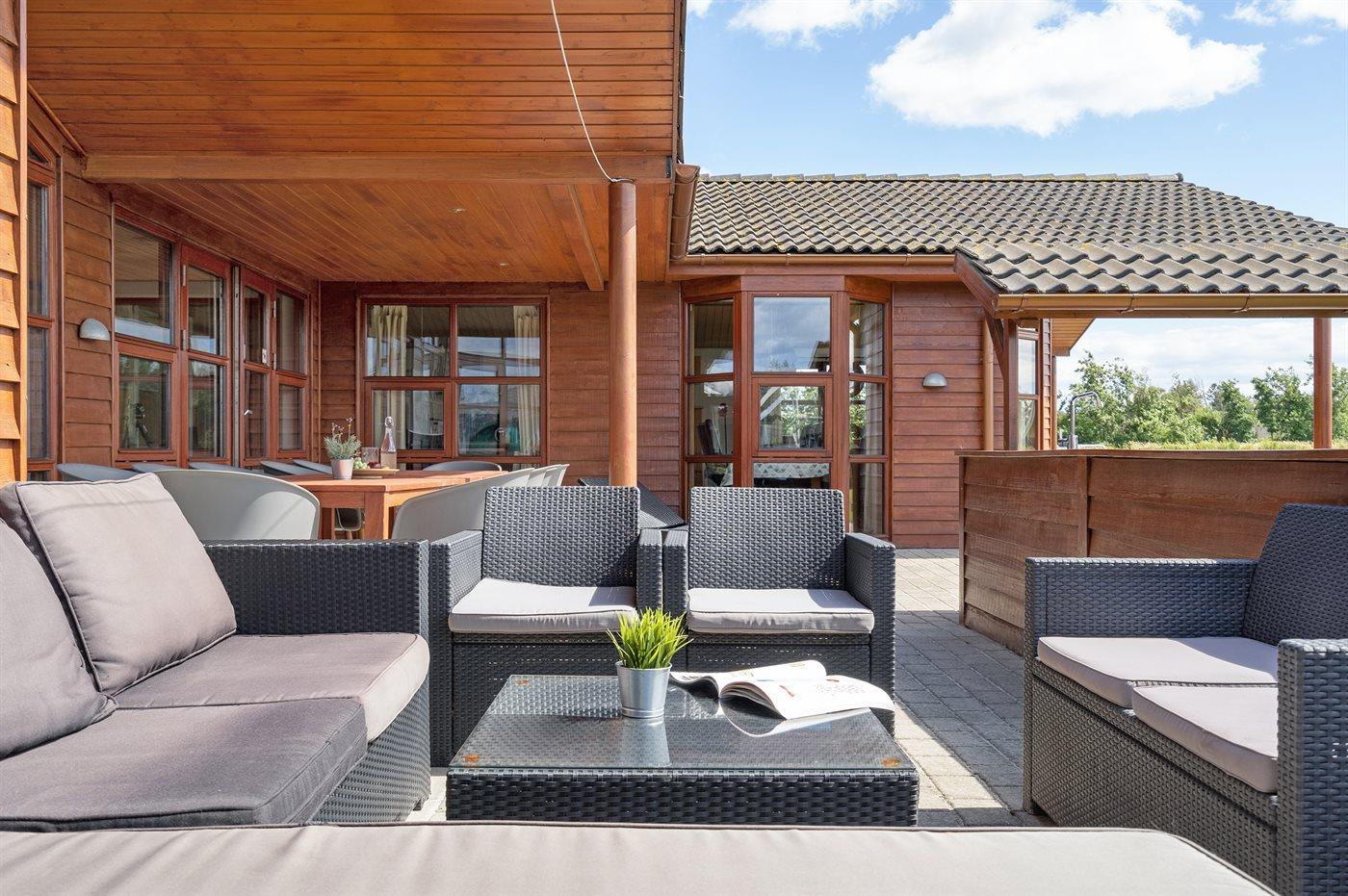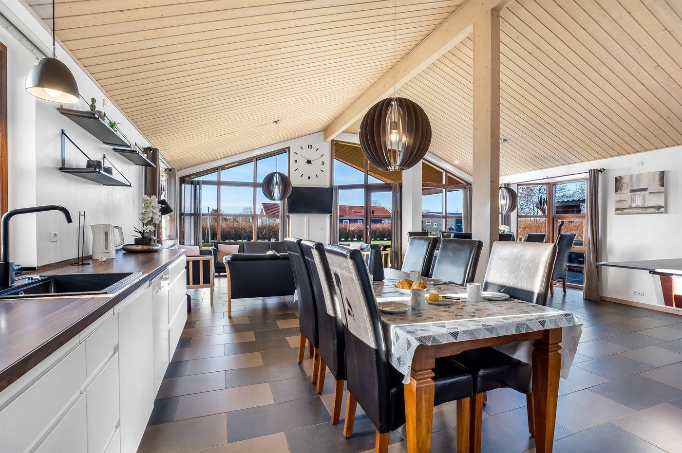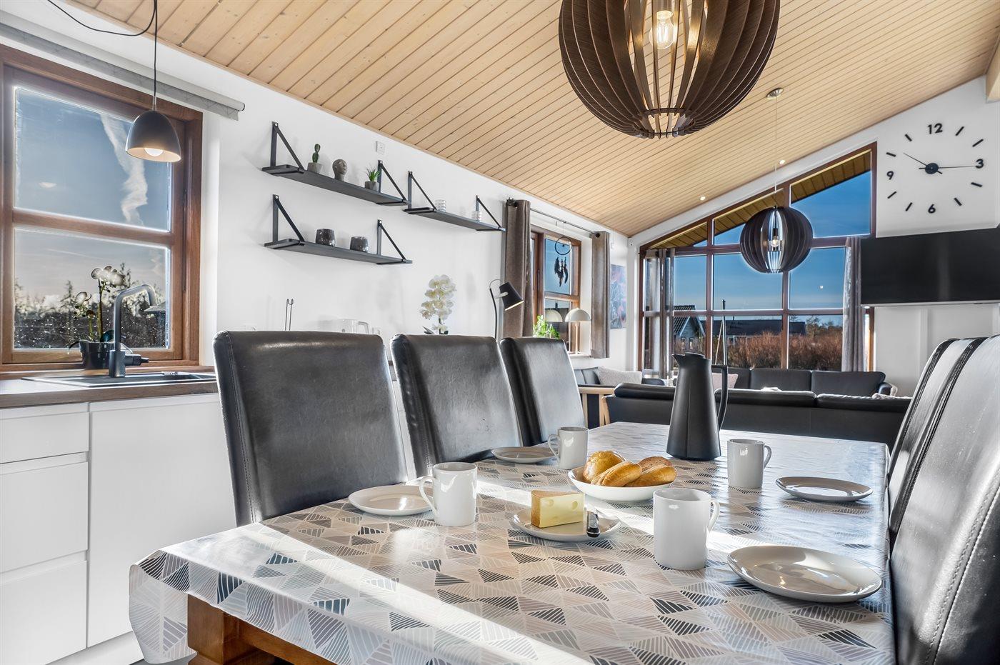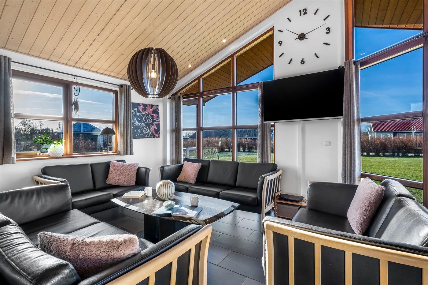 Ein schönes und familienfreundliches Ferienhaus mit Innenpool und Whirlpool sowie einem Angebot aus verschiedenen Indoor-Aktivitäten. Das Ferienhaus bietet mit einem Fußballtor und einem Minigolfplatz außerdem gute Möglichkeiten für Outdoor-Aktivitäten. Das Ferienhaus ist ein Niedrigenergiehaus, was den Verbrauch senkt. Übrigens: 4 der Schlafplätze befinden sich im offenen Obergeschoss des Hauses.