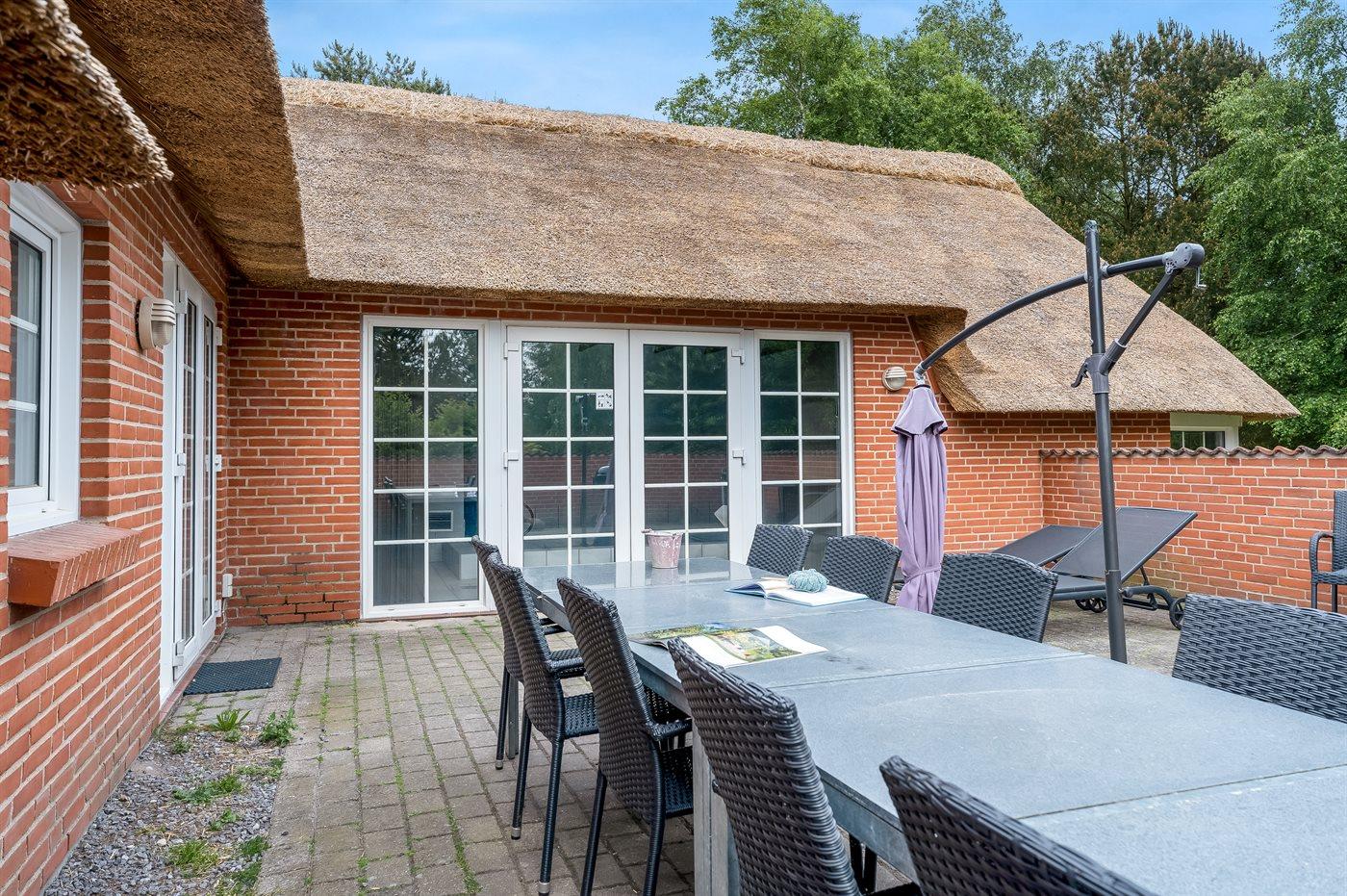 Ein wirklich schönes Ferienhaus - geeignet für 1 bis 3 Familien in einer Gegend mit guten Freizeitmöglichkeiten. Schöne große Terrasse mit viel Platz zum Grillen und Sonnenbaden. Sandkasten, Spielhaus, Schaukel, Rutsche und Fußballtor für die Kleinsten auf dem Grundstück. Parkplatz auf dem Grundstück. Es ist ein Ladestecker für Elektroautos installiert - mit einer Ladeleistung von 11 kW.