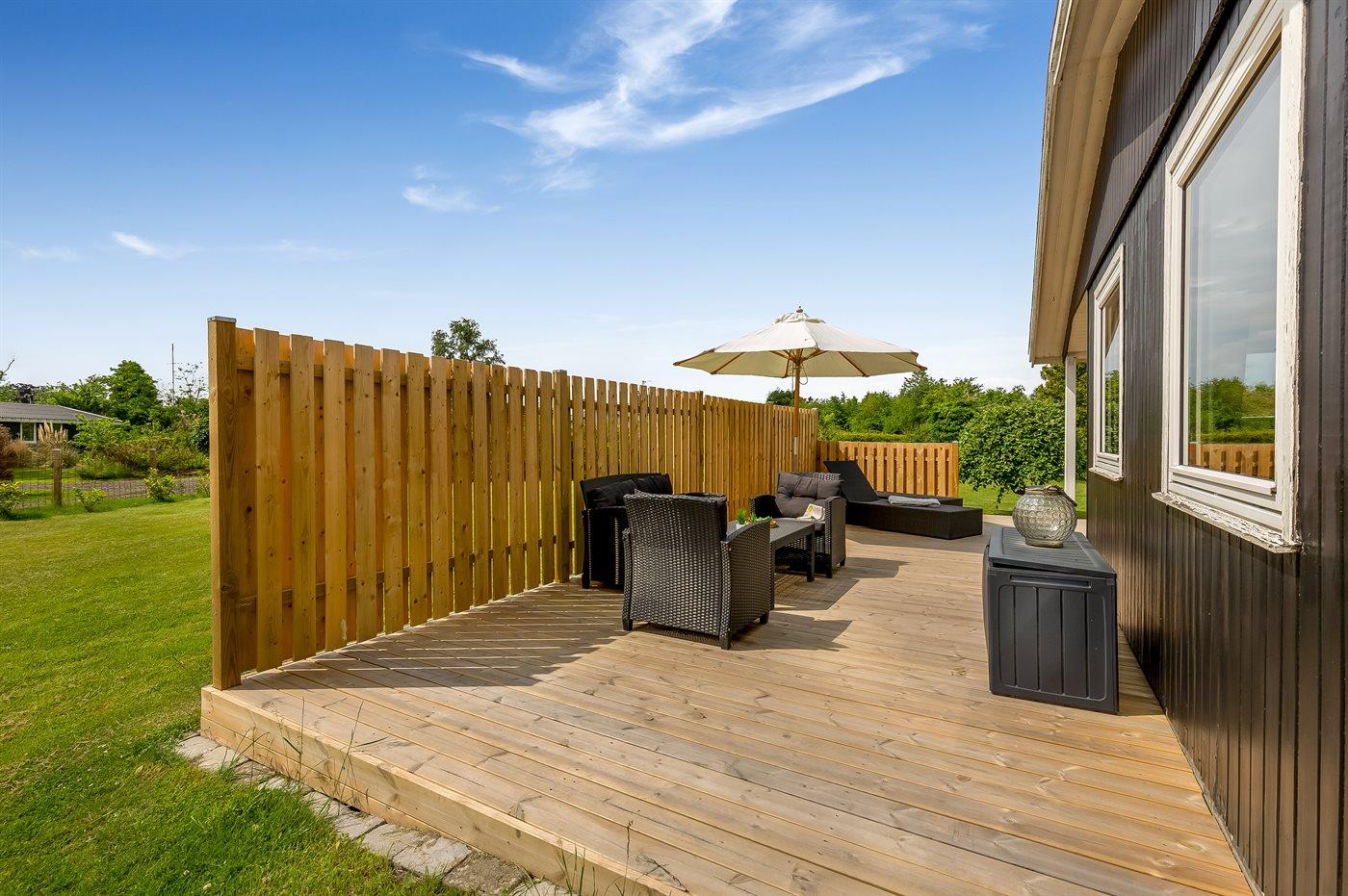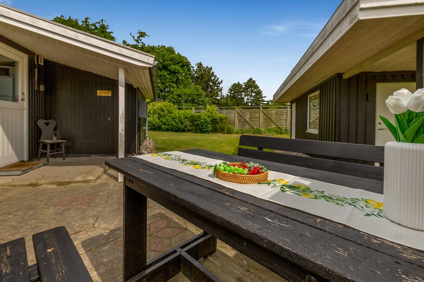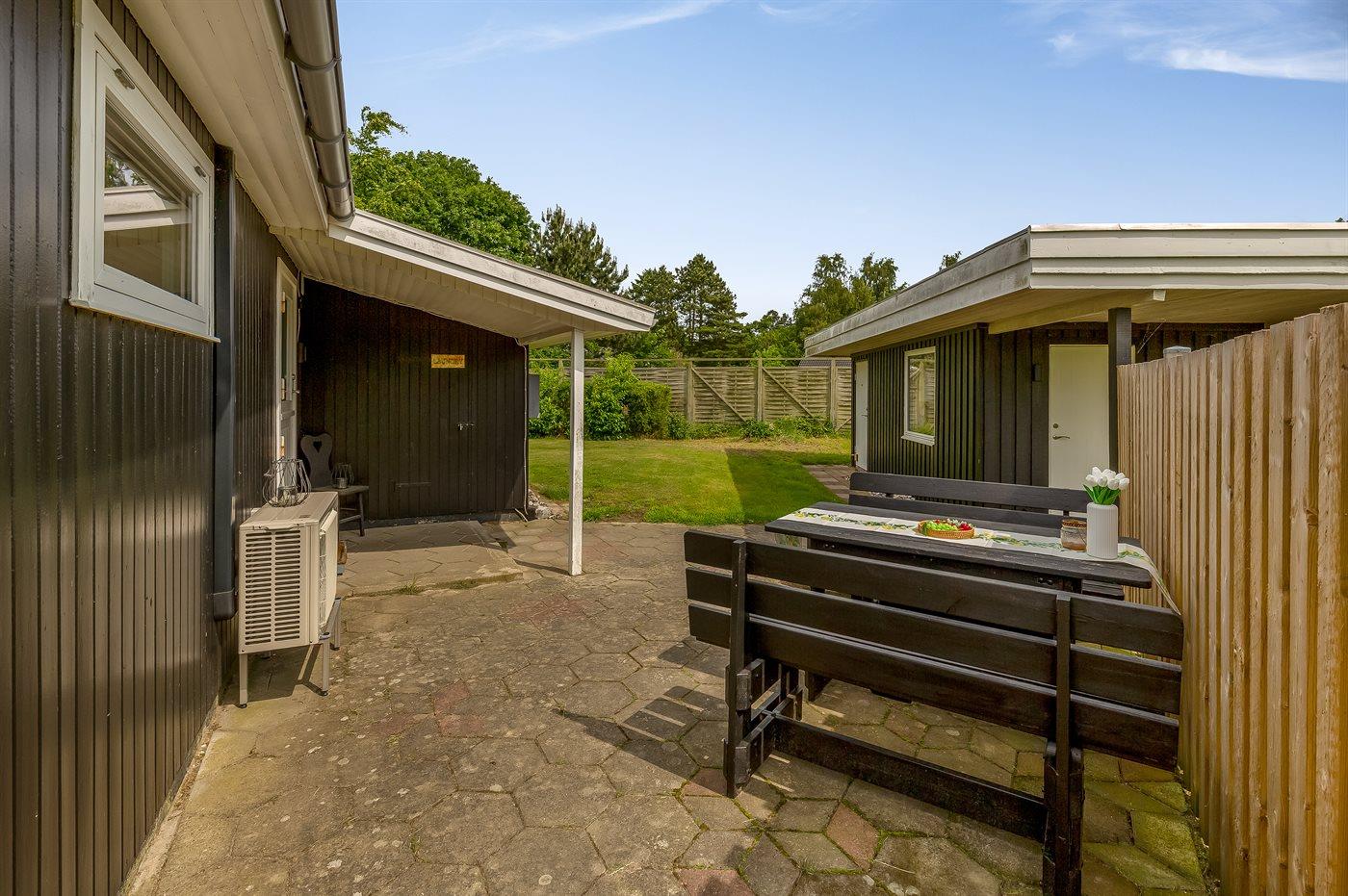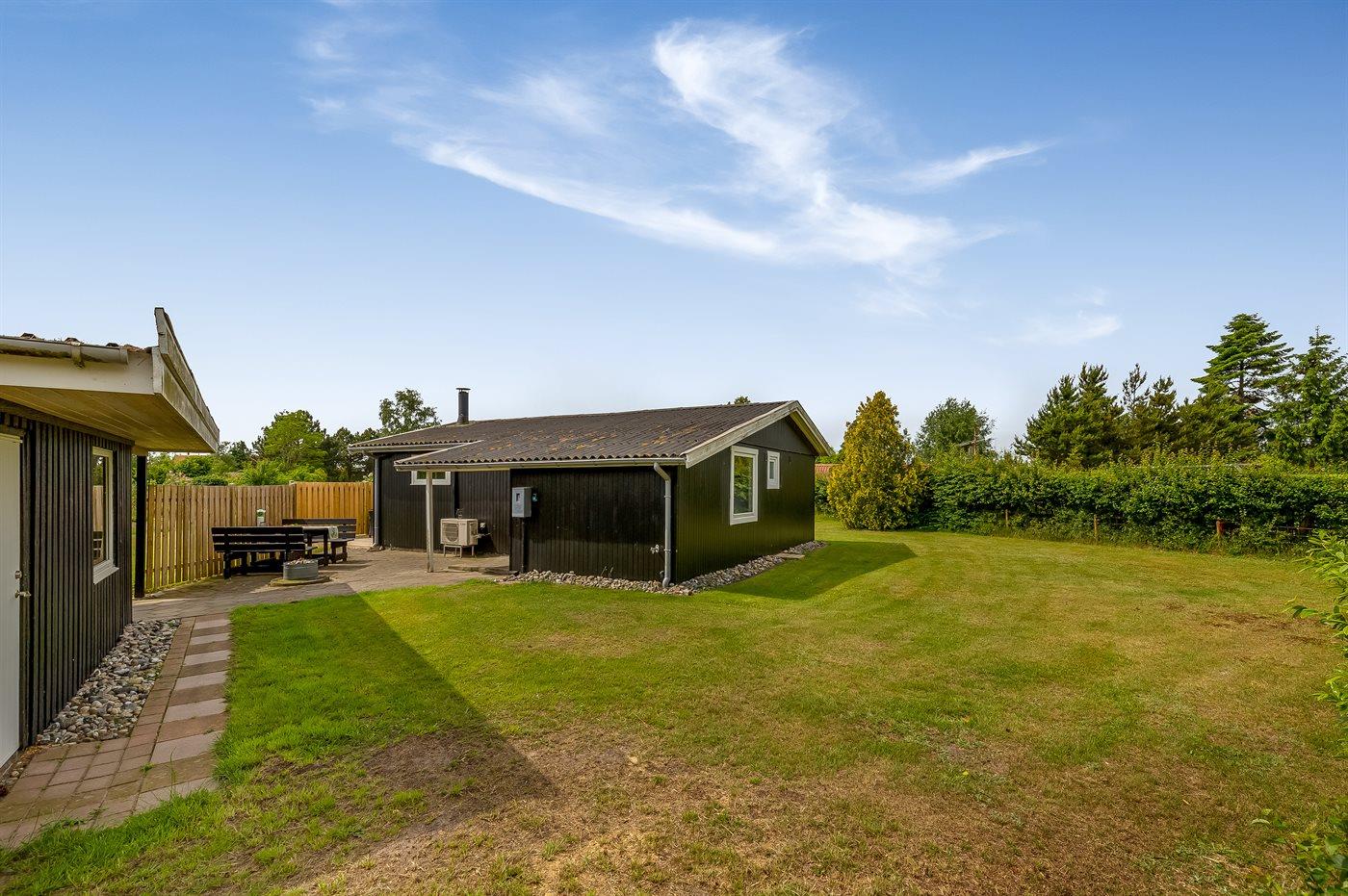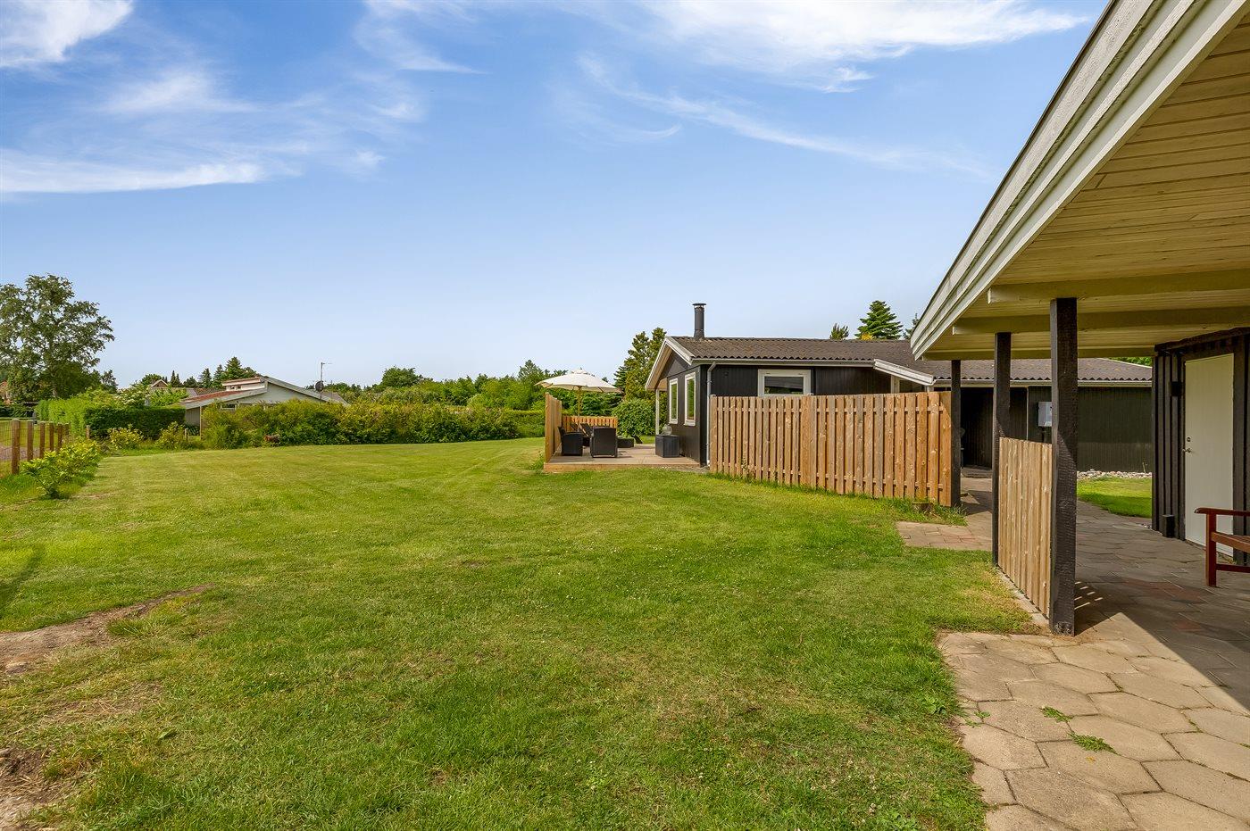 Die Ferienunterkunft liegt auf einem 1179 m² großen Gartengrundstück. Das Grundstück ist eingezäunt. Die Entfernung zum Meer beträgt 750 m. Die nächste Einkaufsmöglichkeit liegt 400 m entfernt. Es steht ein offenes Terrassenareal zur Verfügung. Außerdem gibt es überdachte Terrasse. Geräteraum.Lagerfeuerstelle. Es steht ein Grill zur Verfügung. Es steht ein Carport zur Verfügung. Parkplatz auf dem Grundstück.