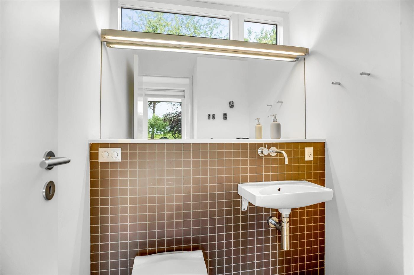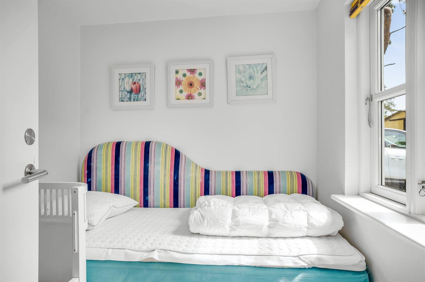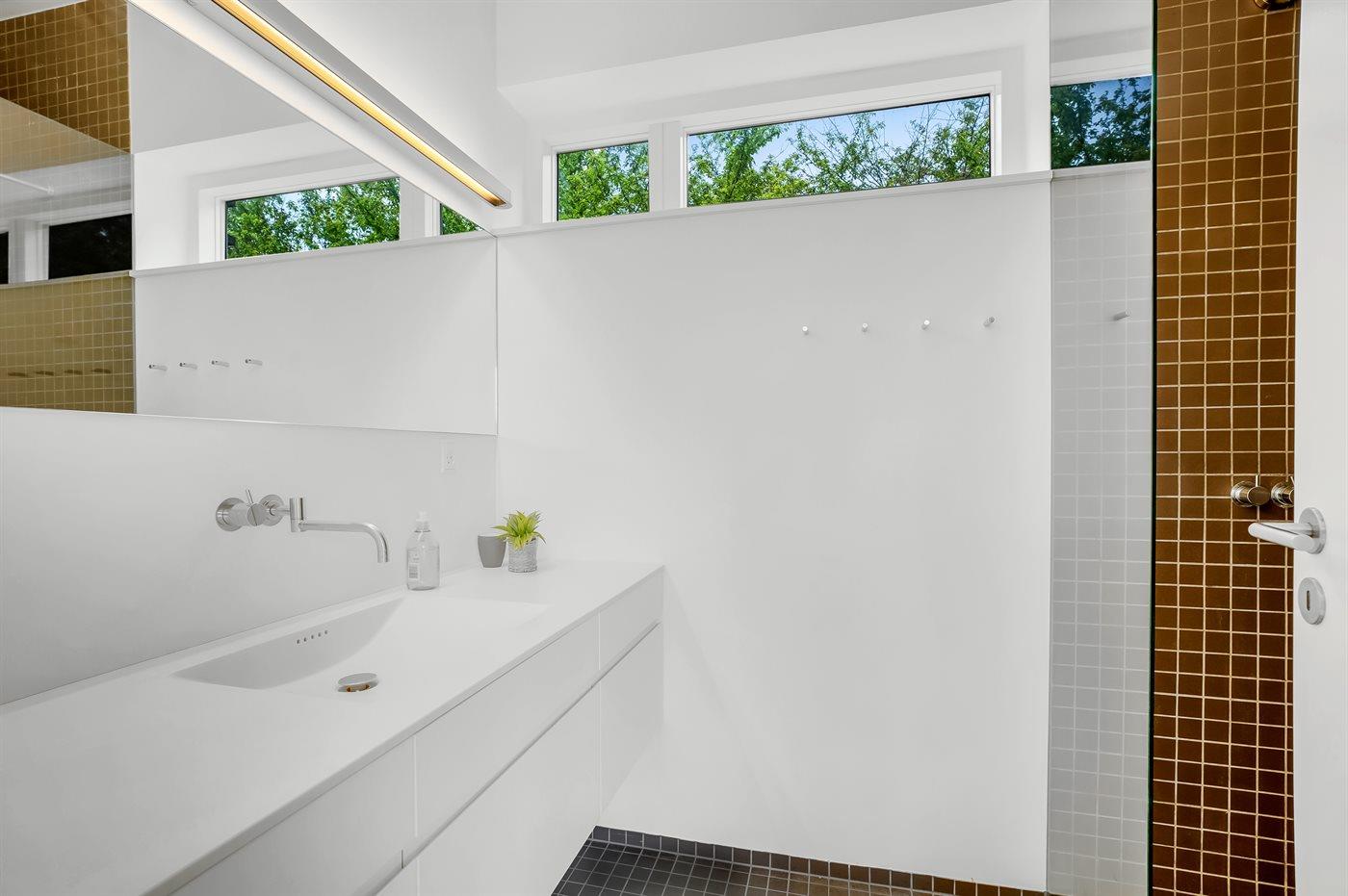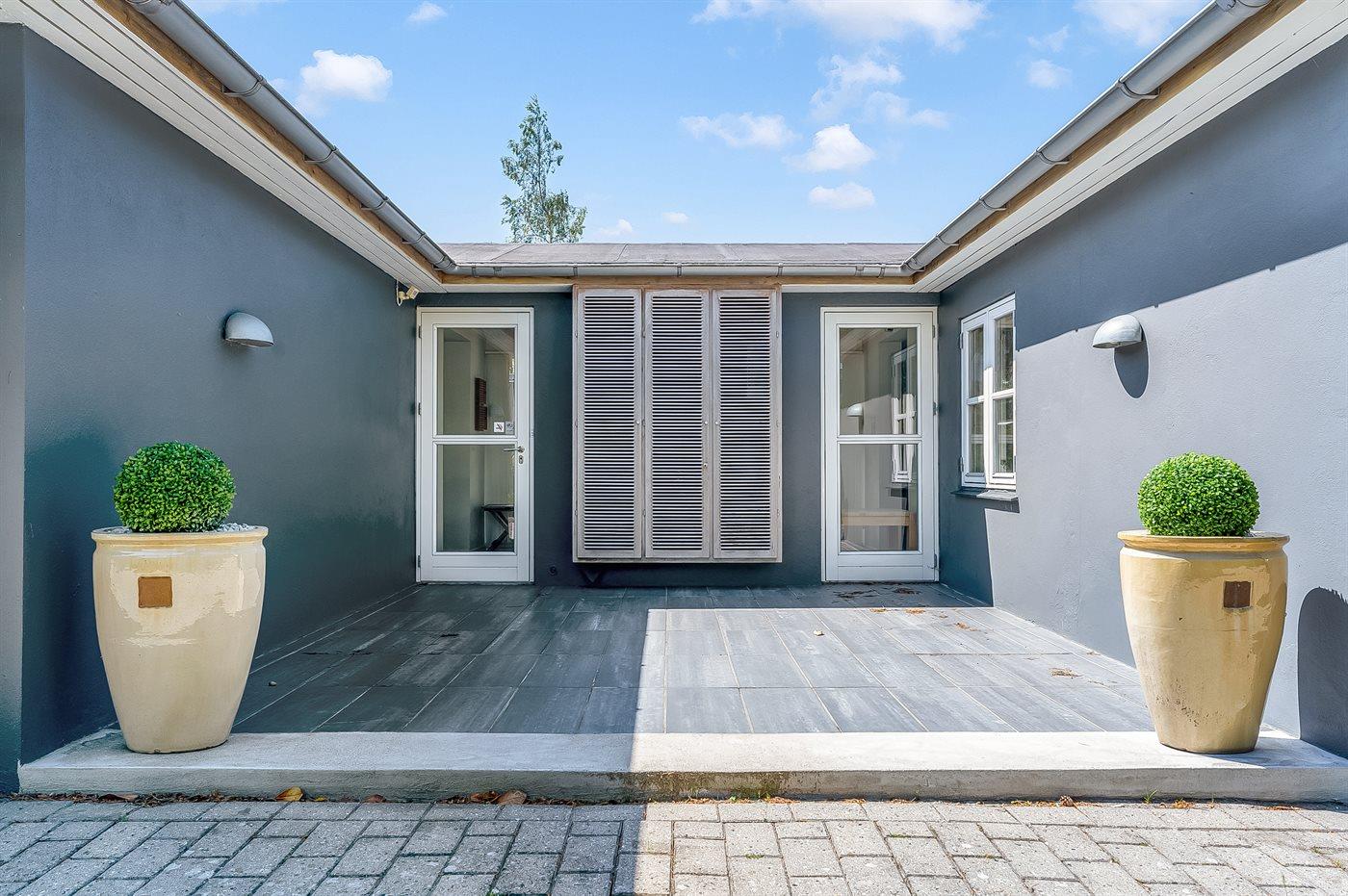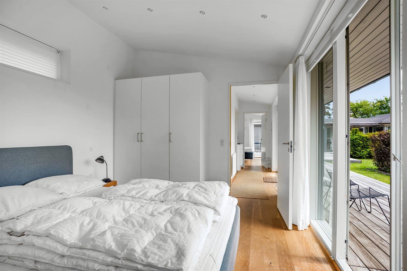 Der große Garten mit alten Bäumen und Sträuchern öffnet sich direkt zum Strand hin. Ein perfekter Ort für Familien und Freunde, die Sport, Entspannung und gemeinsame Zeit schätzen. Das Interieur von Haupthaus und Gästehaus ist in ruhigen Blau- und Weißtönen gehalten – typisch dänisches Design, schlicht und hochwertig.