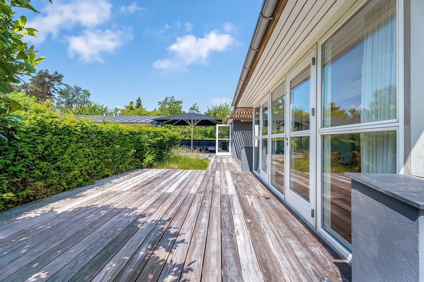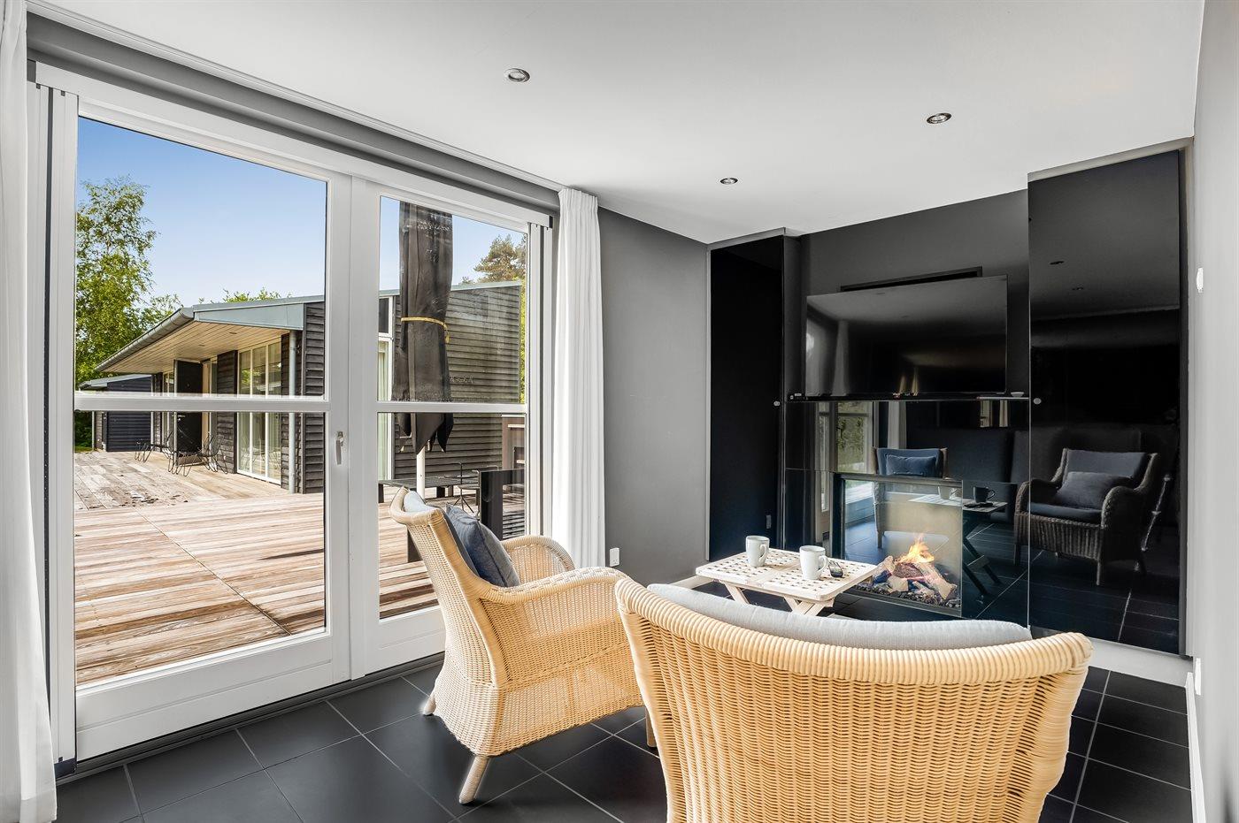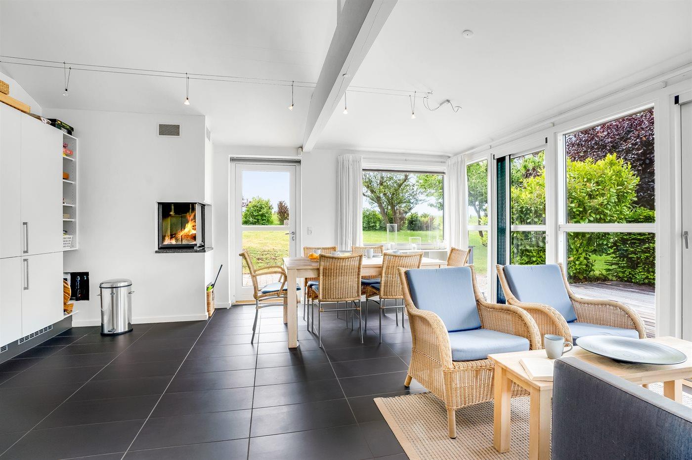 Das zweite Wohnzimmer ist mit großem Flachbild-TV, Apple TV/Netflix, Gaskamin und einladenden Sofas ausgestattet. Kinder wie Erwachsene werden den Raum lieben, der sich zur großen Terrasse mit komfortablen Gartenmöbeln und Sonnenschirm öffnet. Ein kühles Bier, Cocktails oder ein Grillabend passen perfekt in den windgeschützten Sonnenbereich mit Blick auf den Garten.