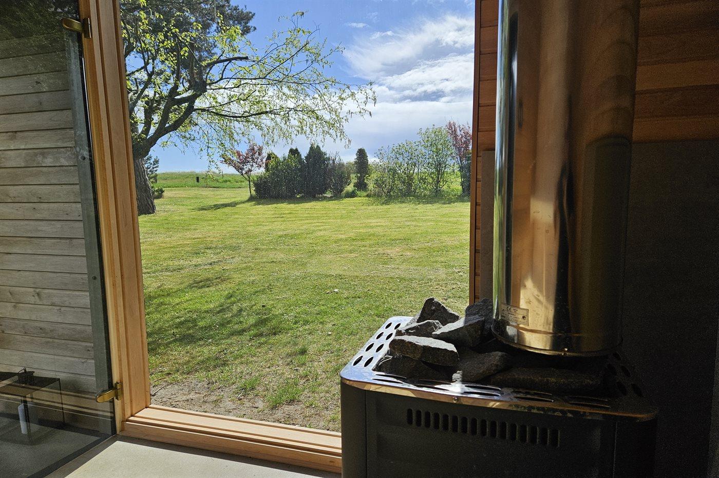 Das Anwesen umfasst ein Haupthaus, ein Hauptgästehaus, ein zusätzliches Gästehaus und eine freistehende Sauna. Die charmante, holzbefeuerte Sauna mit Glasfront ist zum Strand hin ausgerichtet. Ein Sprung ins Meer und ein anschließender Besuch in der Sauna – das ist ein Erlebnis, das dieses Haus zu etwas ganz besonderem macht.