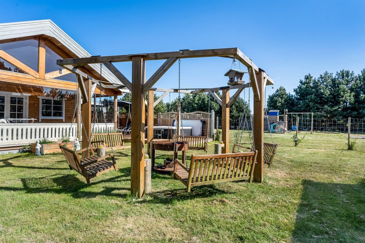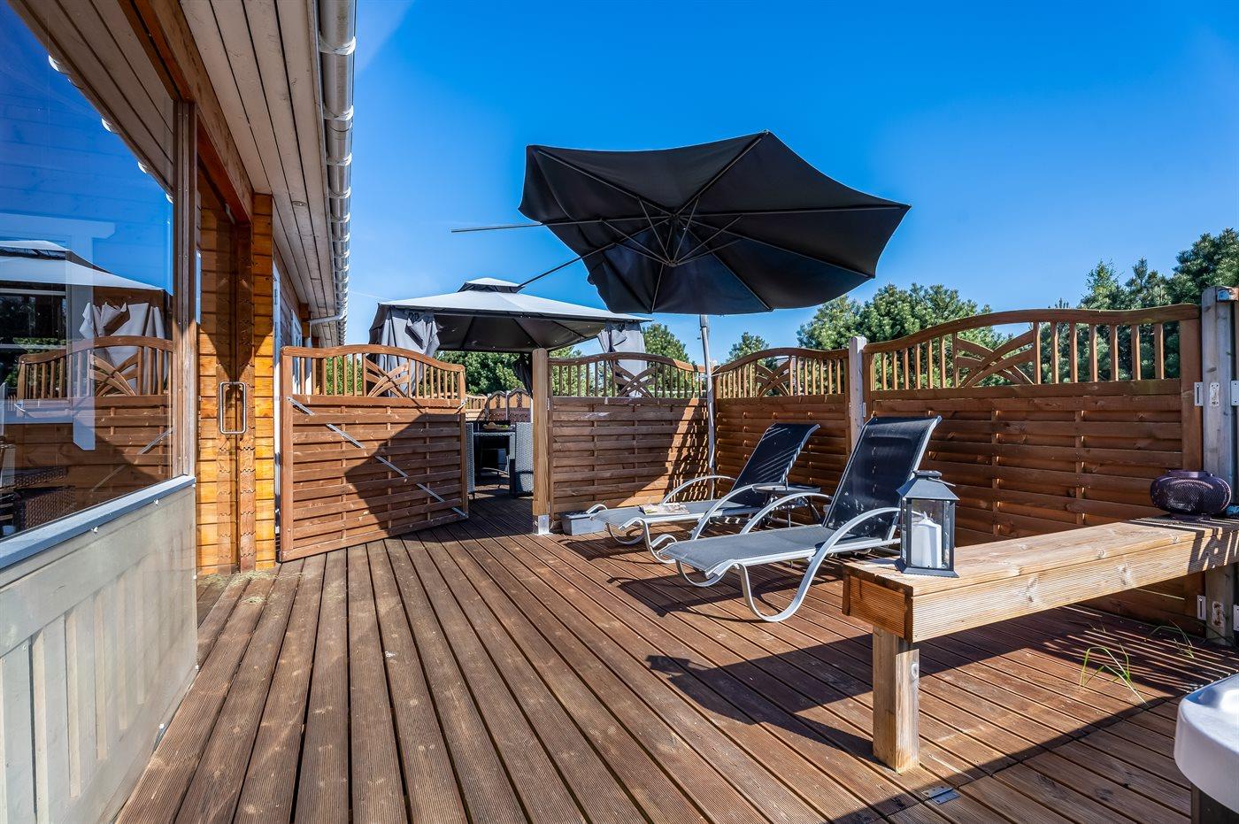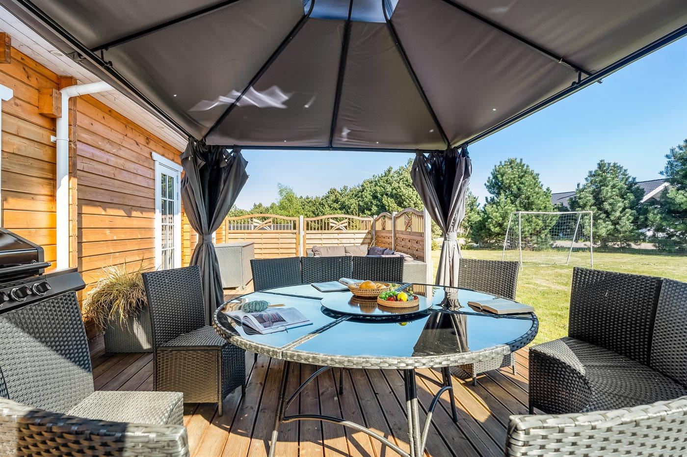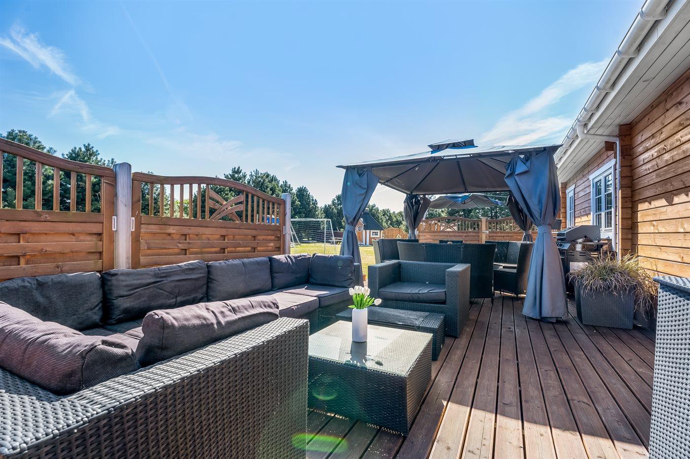 Willkommen in einem Ferienhaus, das sich in vielerlei Hinsicht positiv von der Masse abhebt. Das Haus ist so eingerichtet, dass es viele gemütliche Bereiche sowohl für Klein als auch Groß bietet, gleichzeitig spürt man das Beisammensein mit den anderen, die im Urlaub sind. Wenn man das Leben im Freien mag, bietet dieses Haus wirklich schöne Lösungen für Gemeinschaft und Gemütlichkeit wie z. B. dem großen Außengrill mit Hängesofas rundherum, dem Outdoor-Whirlpool, dem Spielplatz und dem schönen Grillhaus.