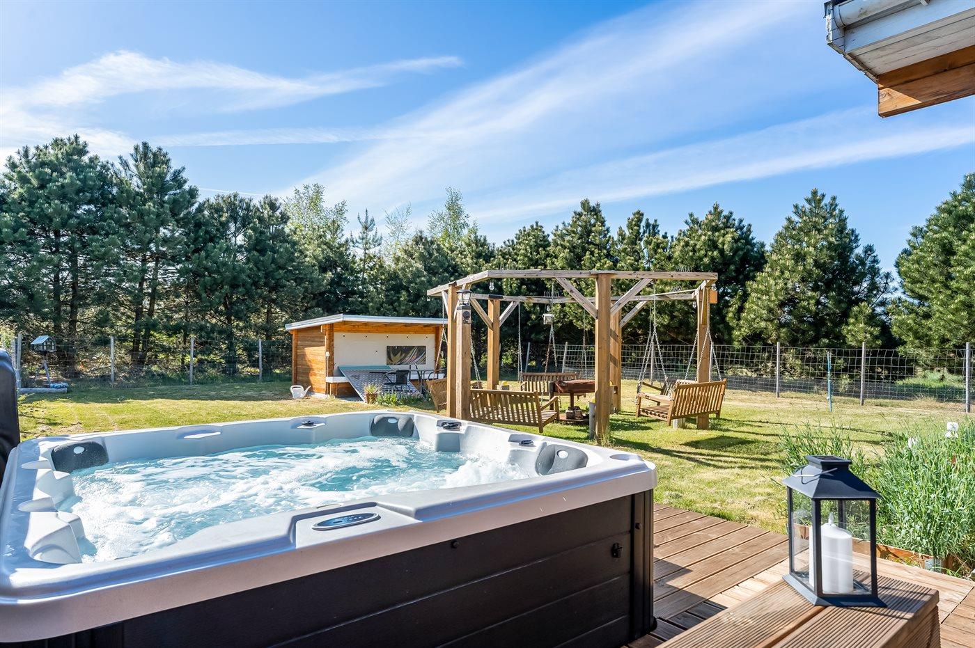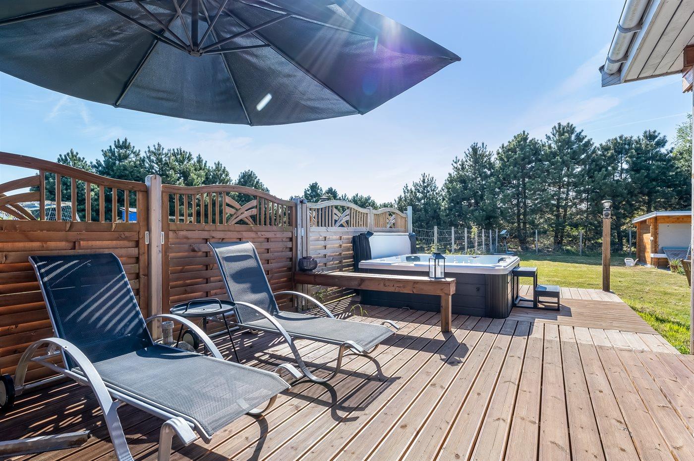 Modernes Ferienhaus in Dänemark mit Whirlpool, großem Garten und vielfältigen Freizeitmöglichkeiten für die ganze Familie.