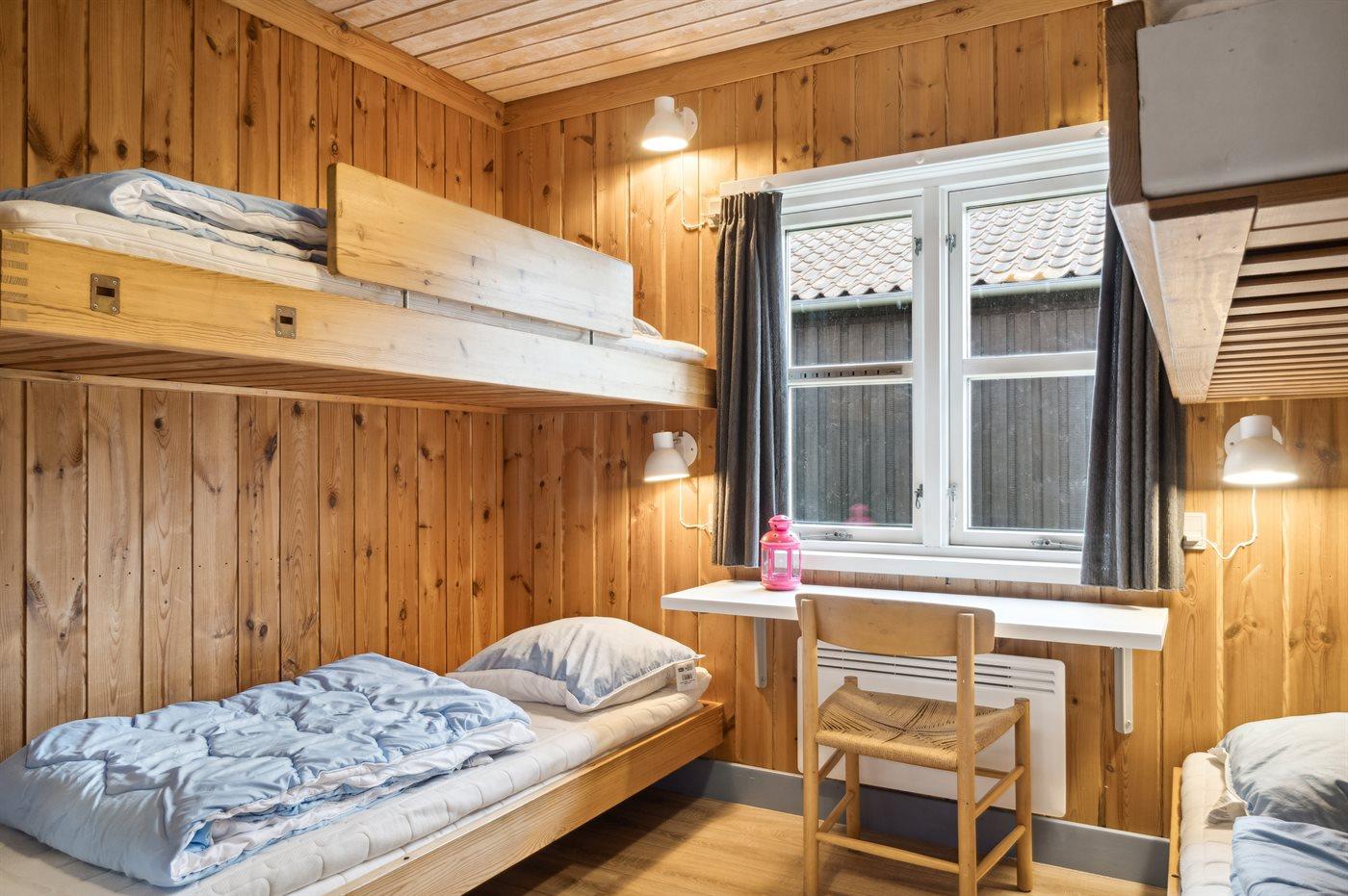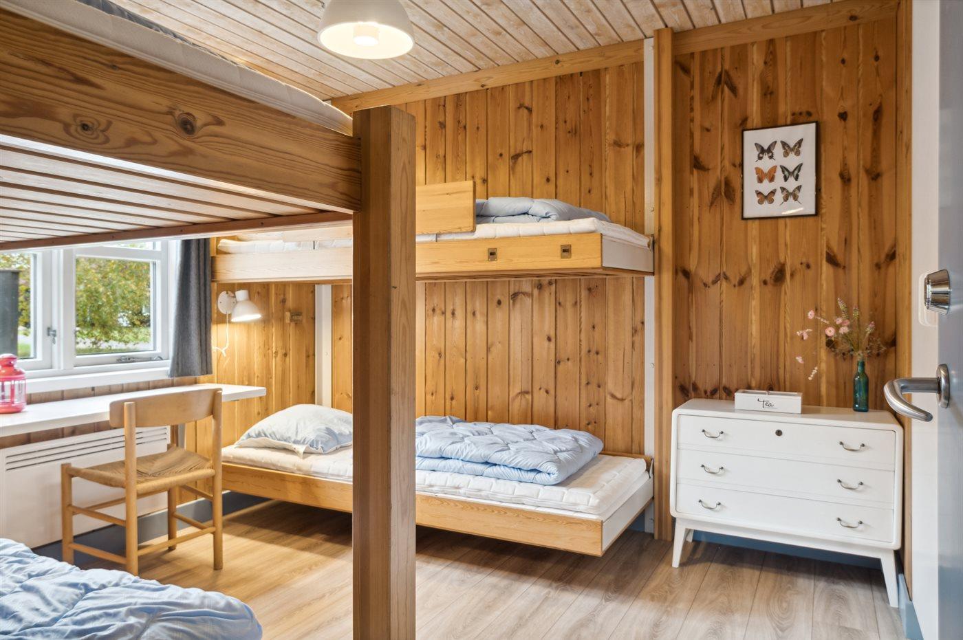 Die Schlafplätze verteilen sich auf 2 Schlafräume. 2 Schlafplätze in einem Doppelbett. 4 Schlafplätze in Etagenbetten.
