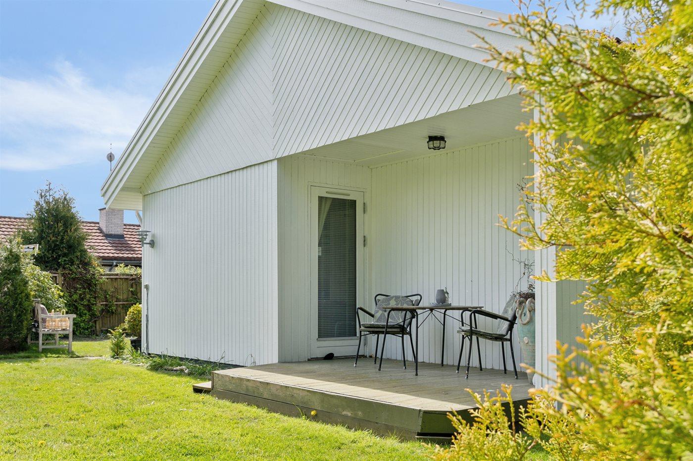 Gemütliches Ferienhaus in der Nähe von Dänemarks schönstem Strand. Gute Morgen- und Abendterrassen mit Gartenmöbeln.