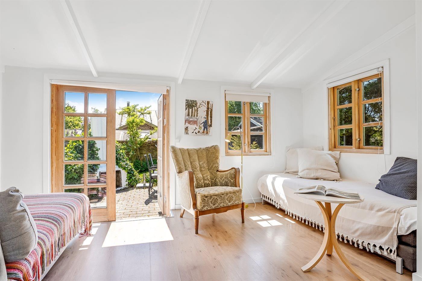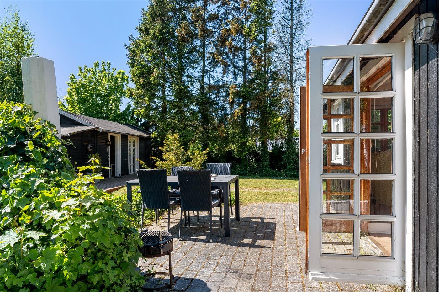 Auf dem eingezäunten Grundstück gibt es mehrere gemütliche Ecken, in denen man die Stunden im Freien mit einem guten Buch, einer Tasse Kaffee oder einem Glas Wein verbringen kann.