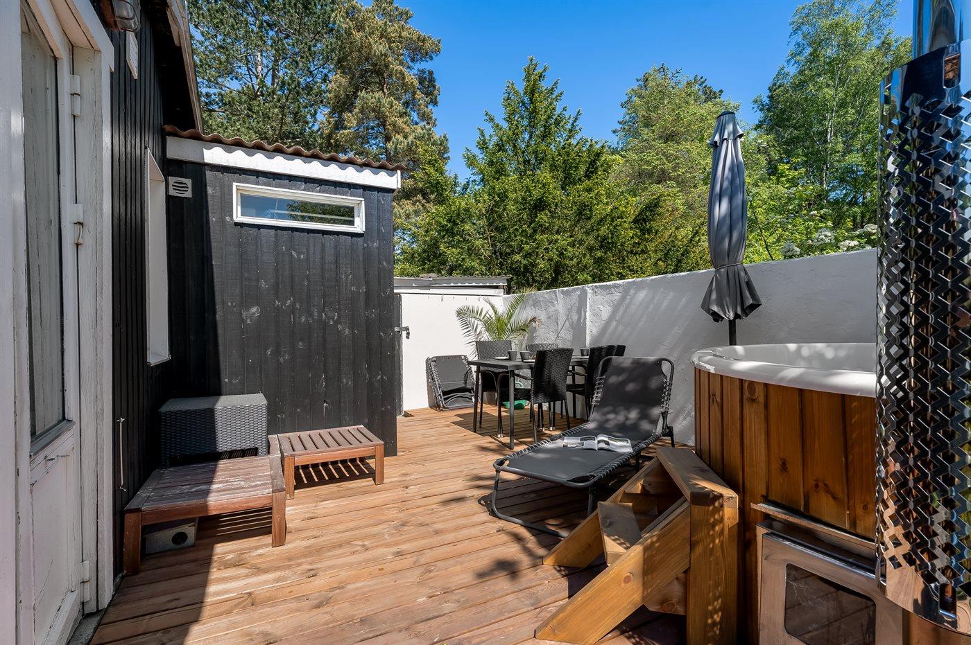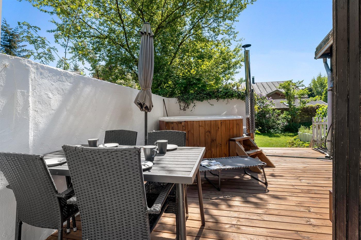 Auf einer der Terrassen befindet sich ein 4-Personen Hot Tub – hier kann man das warme Wasser genießen, sich völlig entspannen und die Seele baumeln lassen.