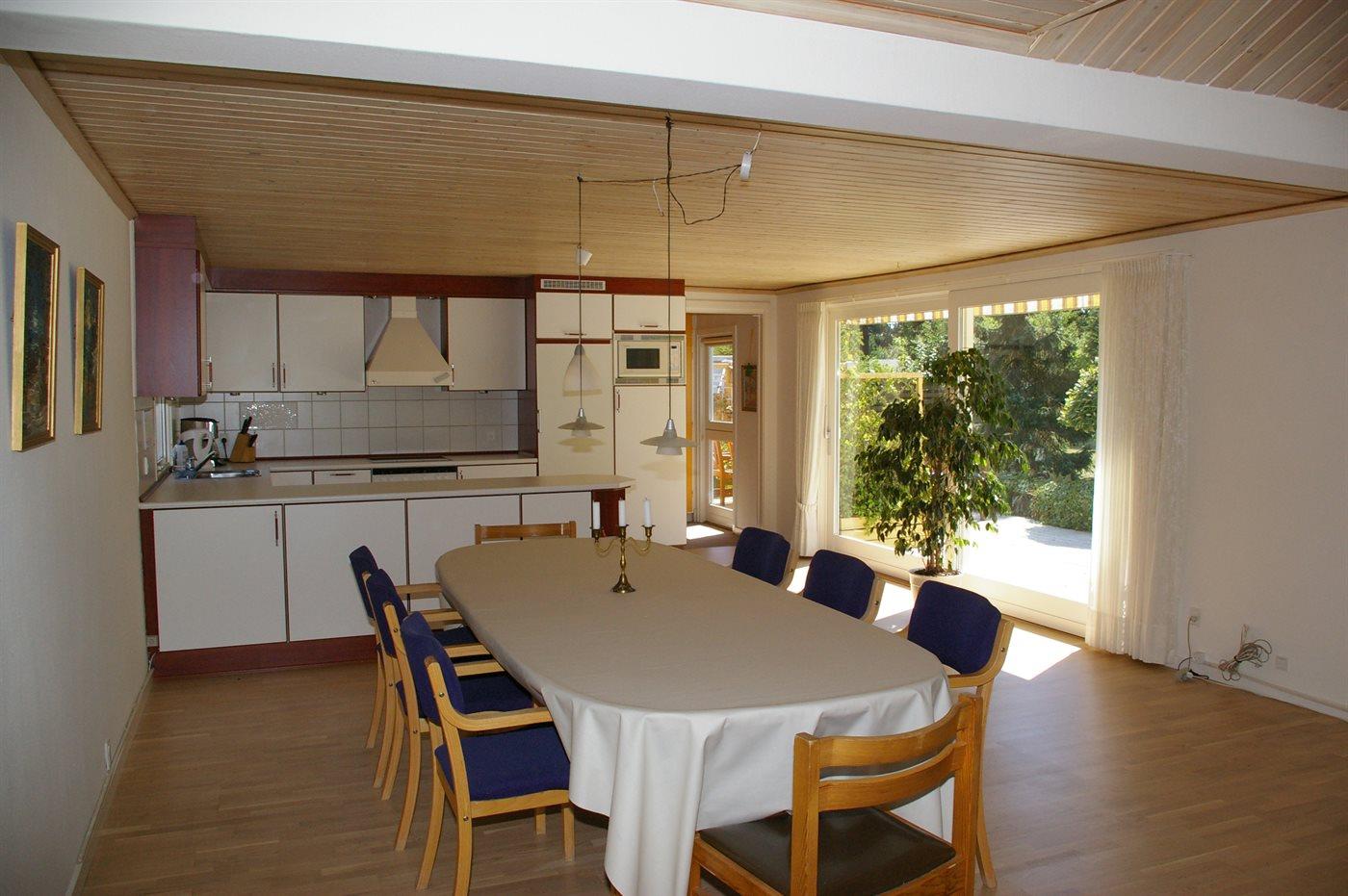 Ein großes Ferienhaus, nur 150 m von schönem Sandstrand entfernt. Das Haus liegt in einer Sackgasse, die direkt zum Strand führt. Großes, ungestörtes und kupiertes Grundstück. Das Haus ist laufend renoviert worden und präsentiert sich hell und freundlich, mit einer offener Küche und Panoramafenstern zum Garten hin. Vom Wohnzimmer gelangen Sie auf die große Terrasse.