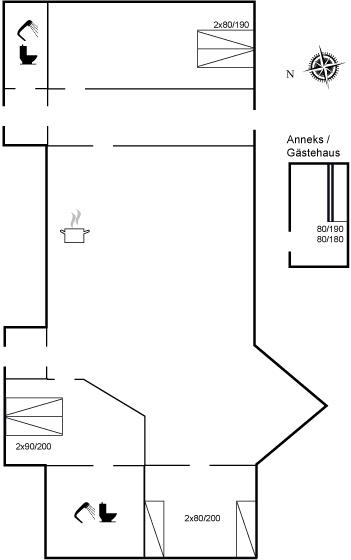 Die Schlafplätze verteilen sich auf 4 Schlafräume. 4 Schlafplätze in Doppelbetten. 2 Schlafplätze in Einzelbetten. 2 Schlafplätze in einem Etagenbett. 2 von diesen Schlafplätzen befinden sich im Gästehaus.