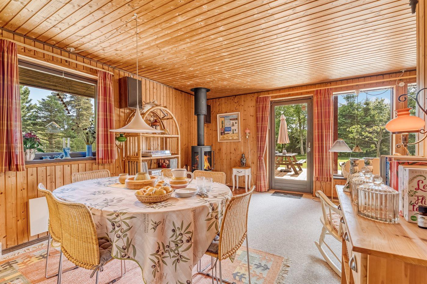 Dieses funktional und einfach eingerichtete Ferienhaus bietet dir eine offene Atmosphäre und gemütliche Details. Im Wohnzimmer findest du einen Kaminofen und eine gemütliche Sofaecke – perfekt für entspannte Stunden.