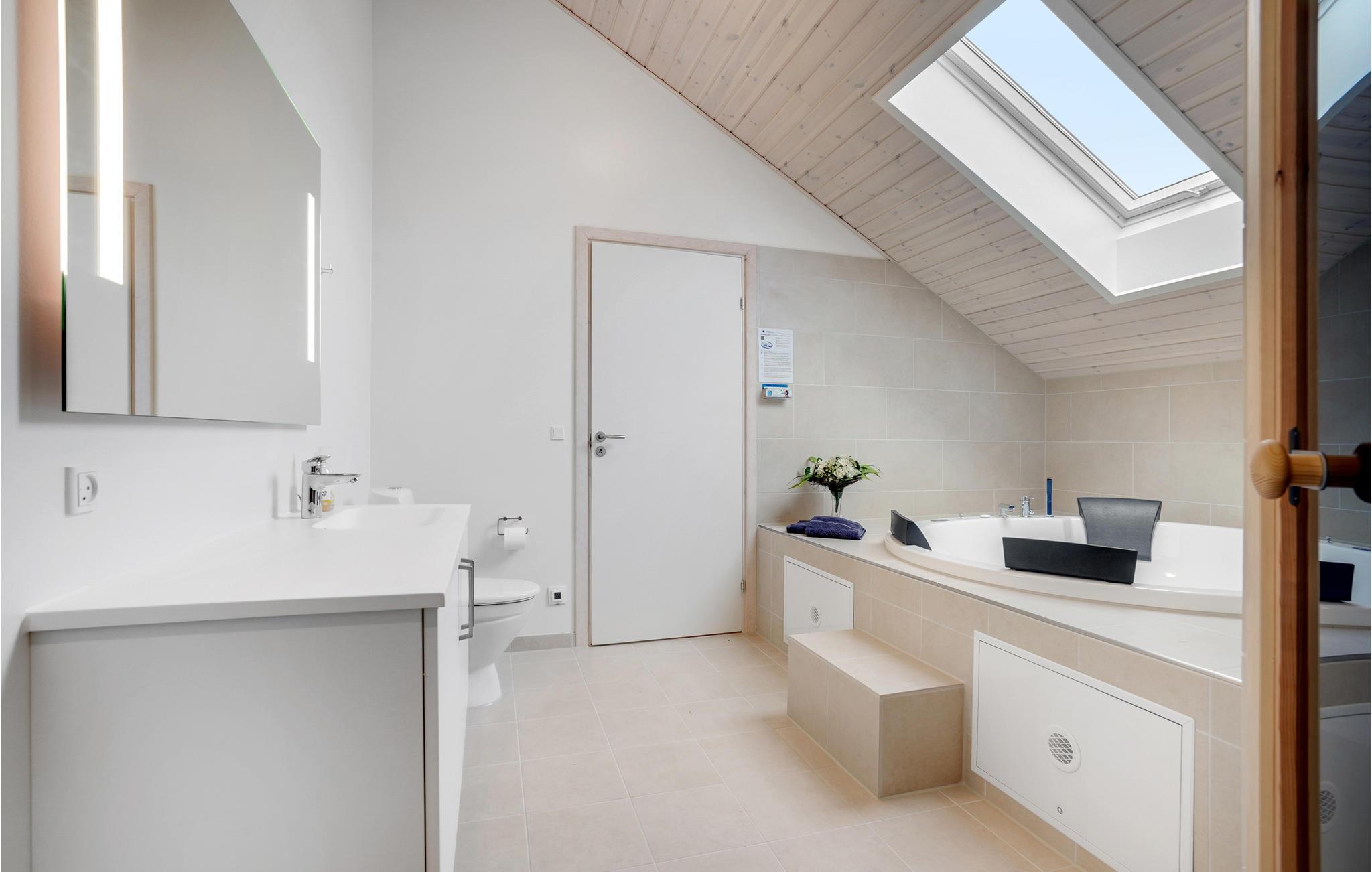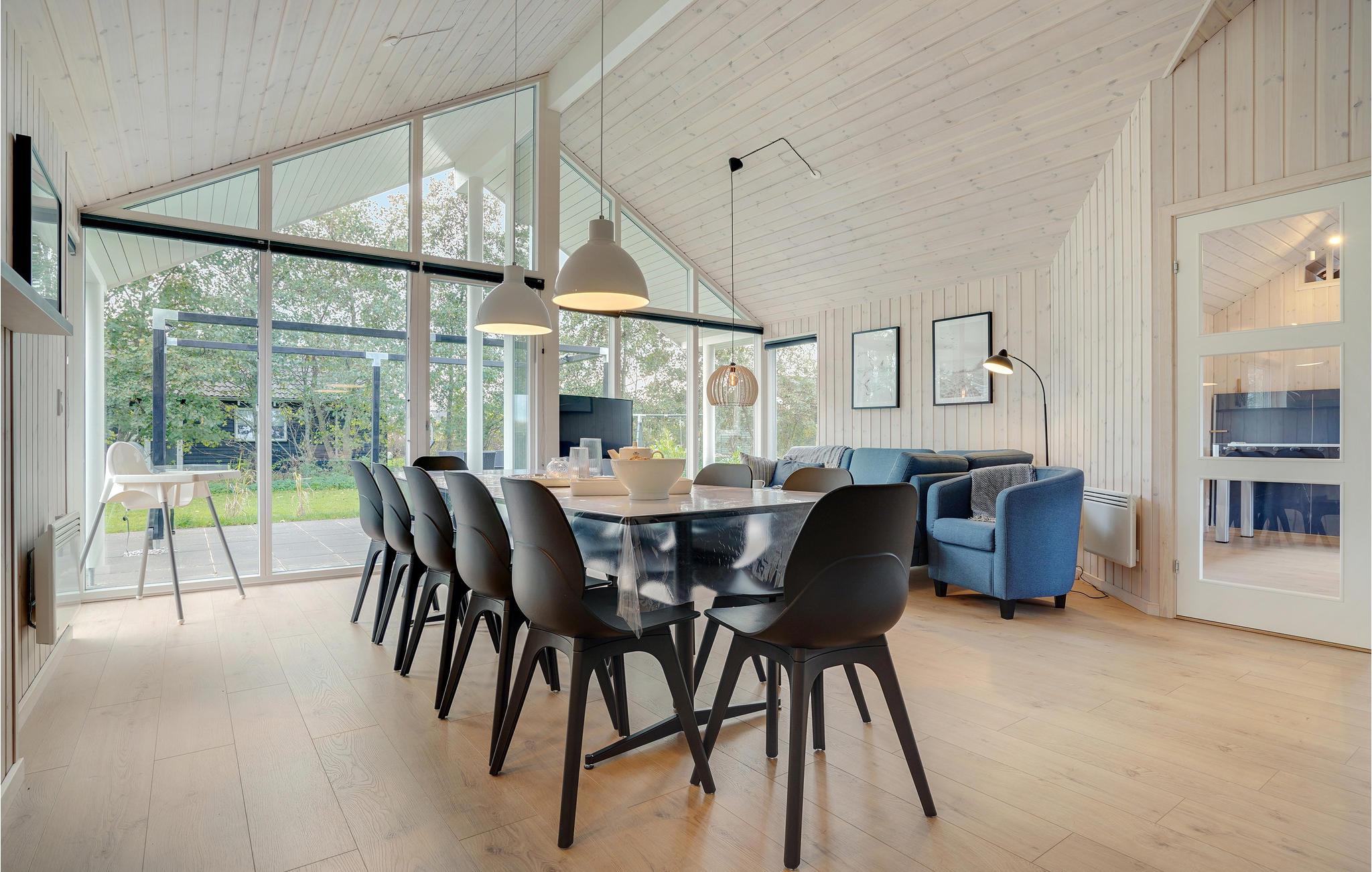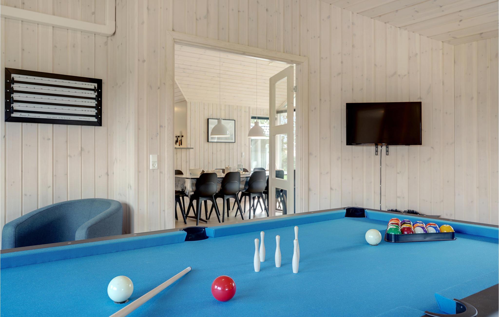 Willkommen in diesem geräumigen Ferienhaus, das Platz für eine Großfamilie oder mehrere befreundete Familien bietet. Betreten Sie das schöne Haus und fühlen Sie sich direkt wohl. Das Haus wird aufgrund der großen Fensterfronten von natürlichem Licht durchflutet und lädt Sie ein in den Gemeinschaftsräumen die Zeit gemeinsam zu verbringen. Im klassischen Wohnraum mit Essbereich und Küche können Sie spielen und sich entspannen, während im Aktivitätsraum der Spaß und der Wettbewerb im Fokus stehen. Auch eine Entspannungsoase steht für Sie bereit mit einem Whirlpool für mehrere Personen und eine Sauna.
