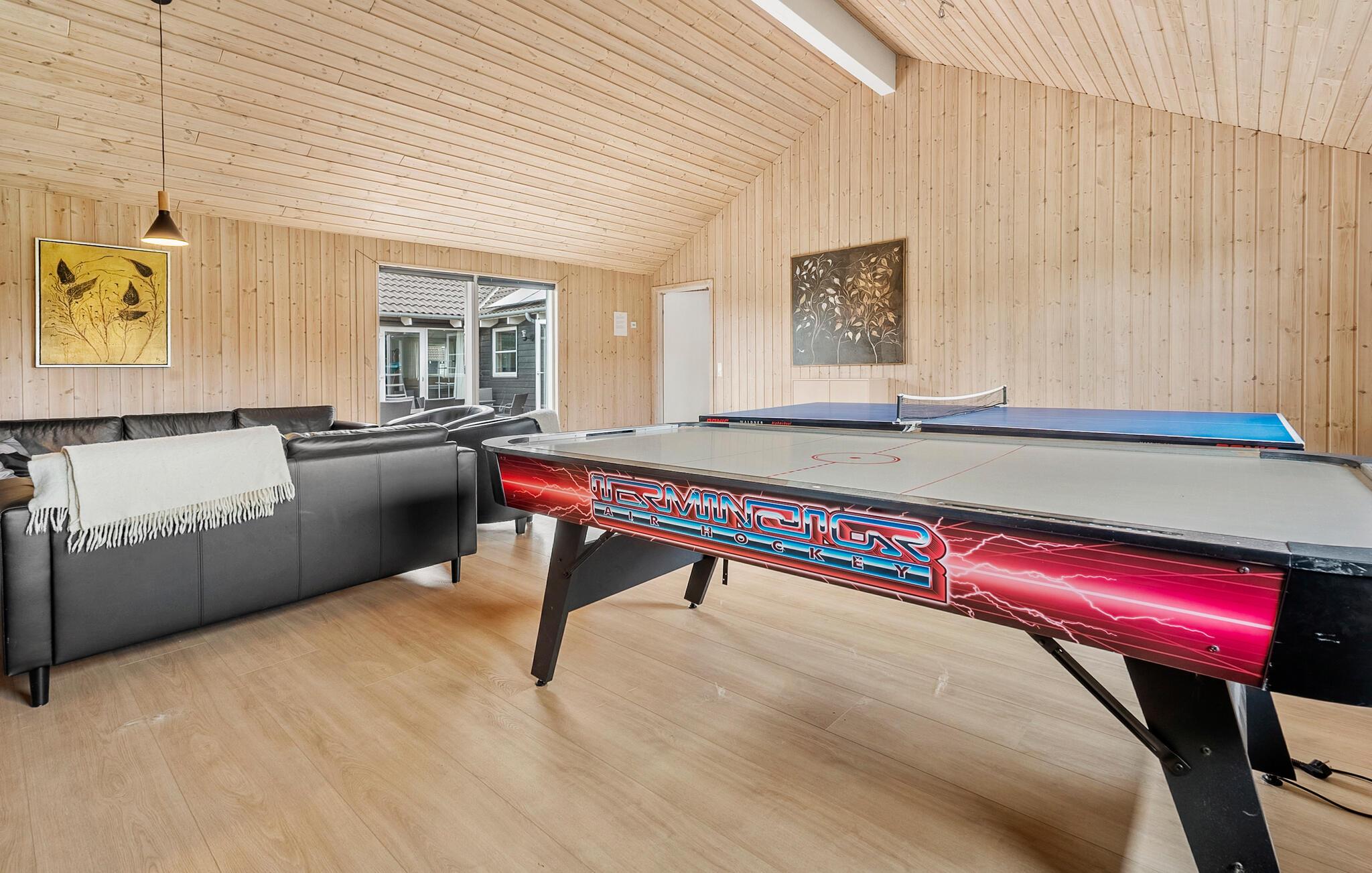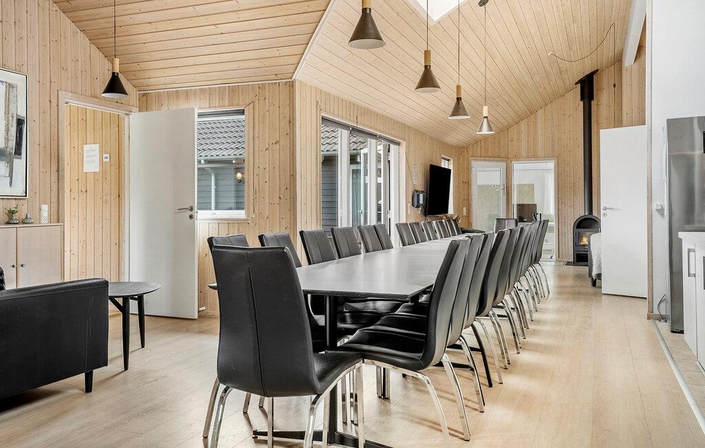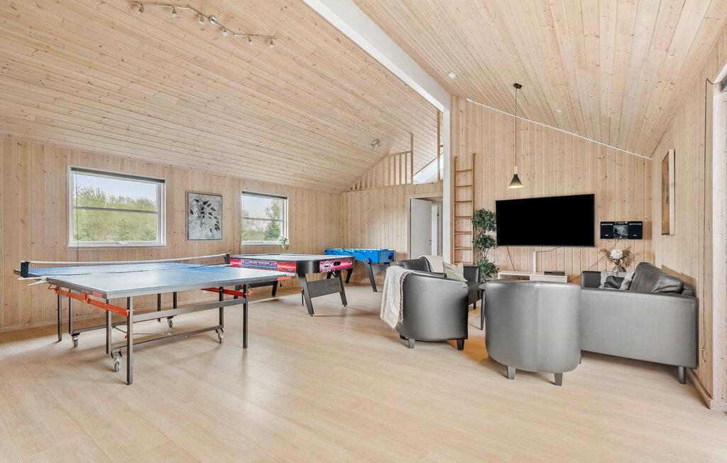 In diesem großzügigen Ferienhaus in Marielyst auf Falster verbringen Sie Ihren Urlaub mit allem, was Sie für entspannte Tage mit einer größeren Reisegruppe benötigen. Ob mit mehreren Familien oder Freunden, hier finden Sie genügend Raum, um gemeinsam zu kochen, zu spielen und zur Ruhe zu kommen. Beginnen Sie den Tag in der modernen, offen gestalteten Küche, wo Sie gemeinsam das Frühstück zubereiten. Nehmen Sie Platz am langen Esstisch und planen Sie Ihren Tag in geselliger Runde. Die vielen Sitzmöglichkeiten laden zum Austausch und Verweilen ein. Wer sich sportlich betätigen möchte, nutzt den Aktivitätsraum mit Billard, Tischtennis und Air-Hockey. Für die Entspannung stehen Ihnen ein eigener Pool, ein Whirlpool und eine Sauna zur Verfügung.